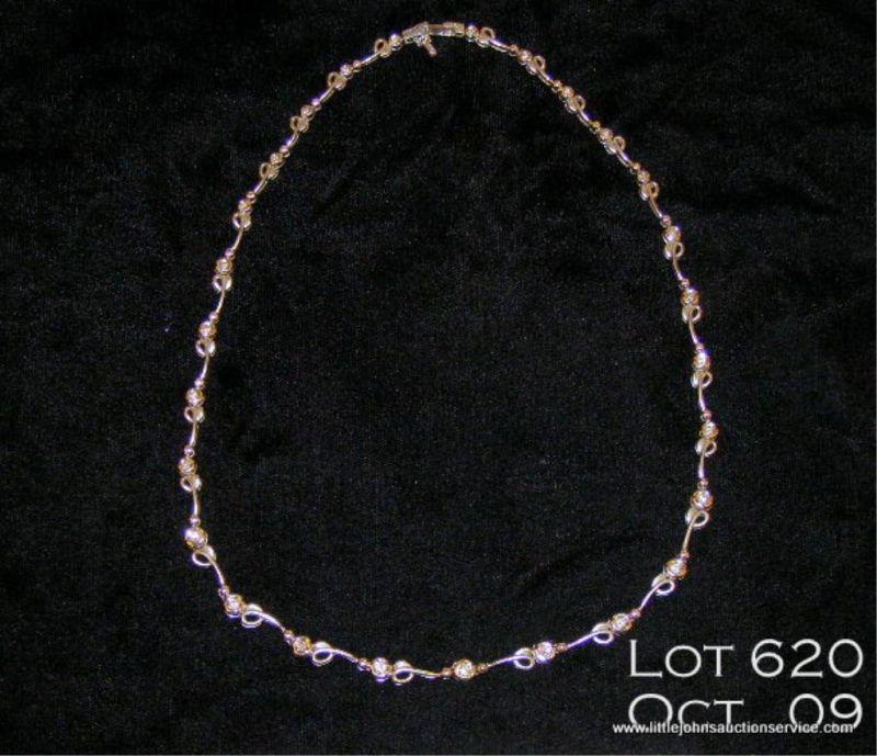 One twist and link design necklace made in 14k white gold and bezel set with 27 round diamonds approx. wt. 1.40 ct. gold wt. 17 grams. Est. $1,000 - $3,000
