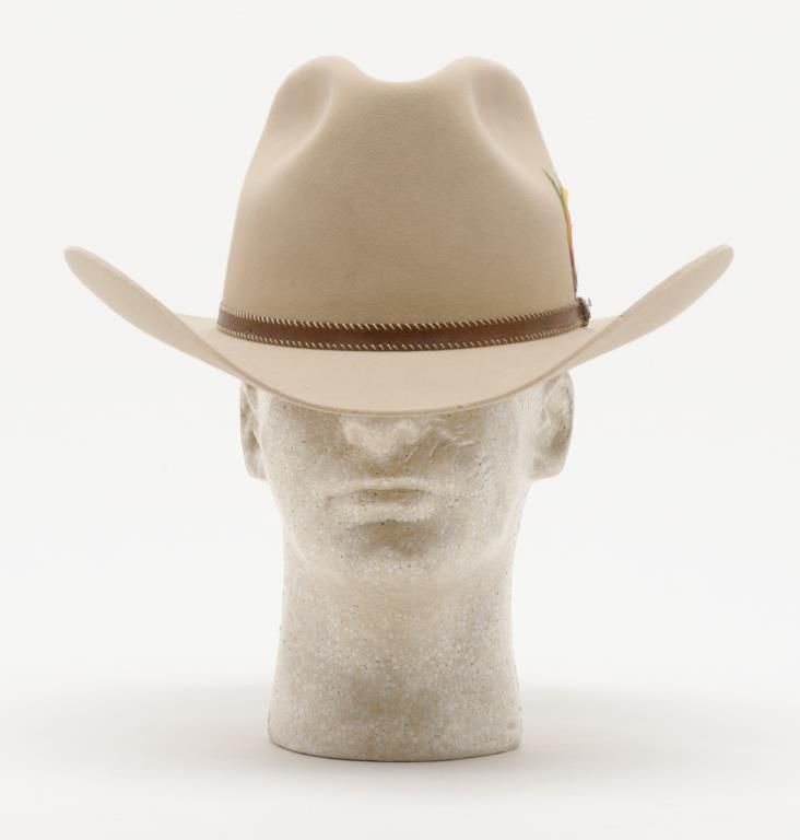 One wesern cowboy hat by Stetson size 7 1/4. Has been in storage for a few years. Never used. Est.: $259-$350.
