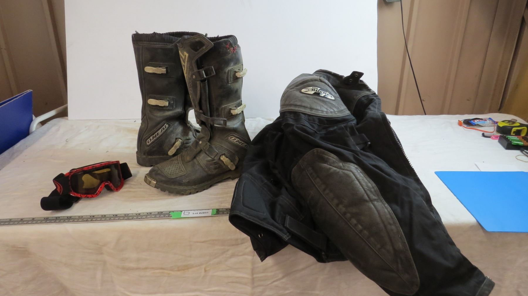 Oneal size 8 boots, joe rocket size xxl jacket, goggles