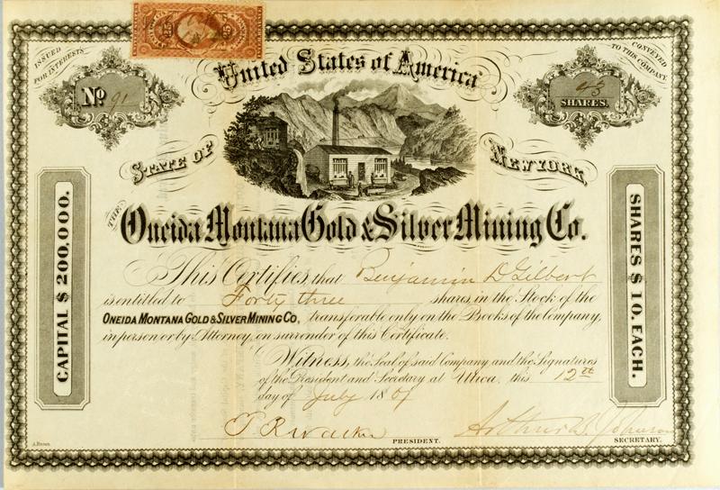 Oneida County,MT - July 12, 1867 - Oneida Montana Gold and Silver Mining Co. Stock *Territorial* :