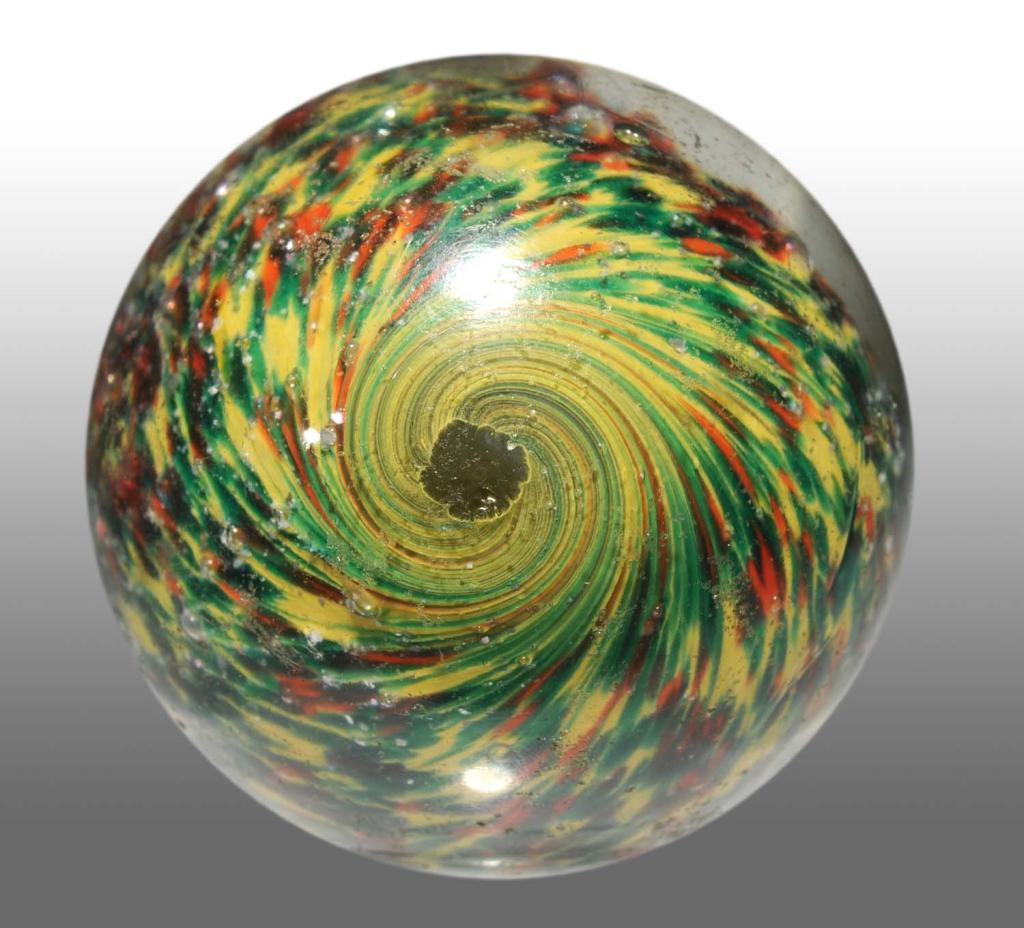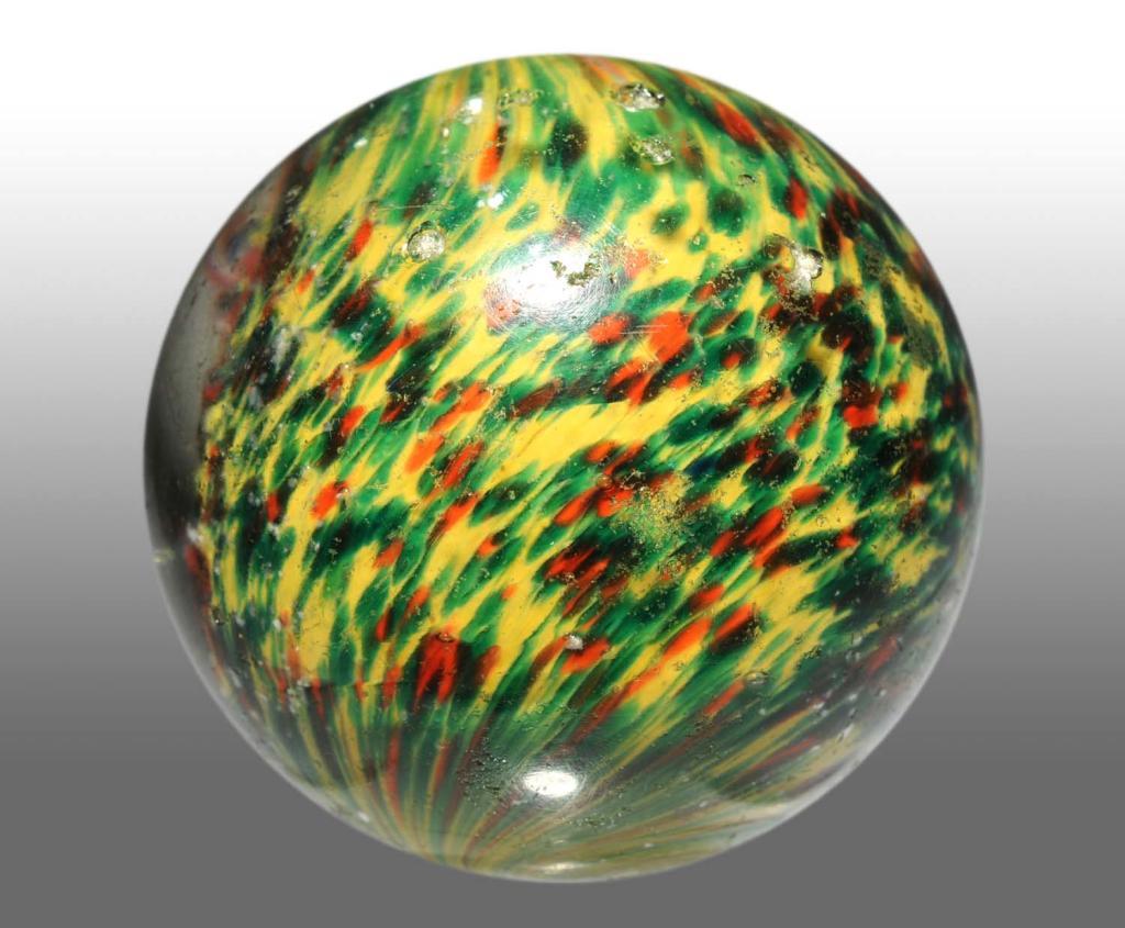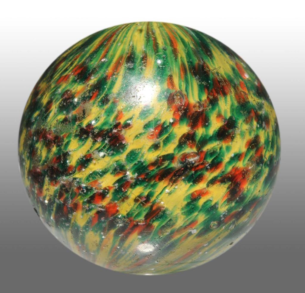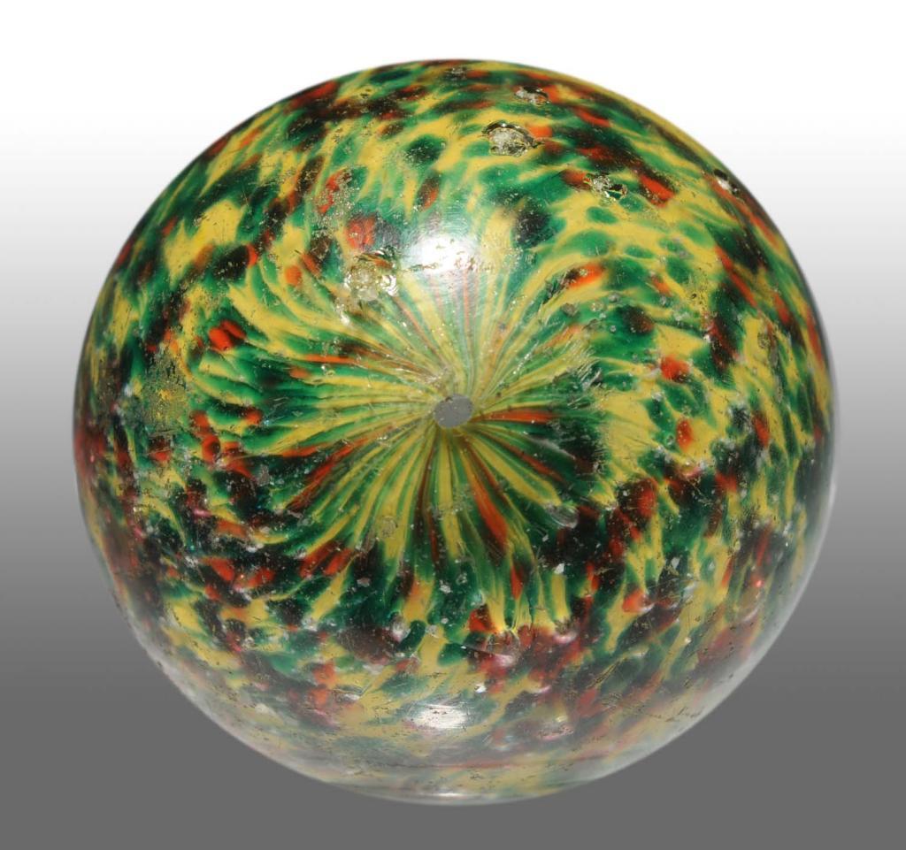 Green and yellow with nice distribution of mica throughout. Some chipping to surface. Condition (8.0). Size 2 - 3/32" Dia.