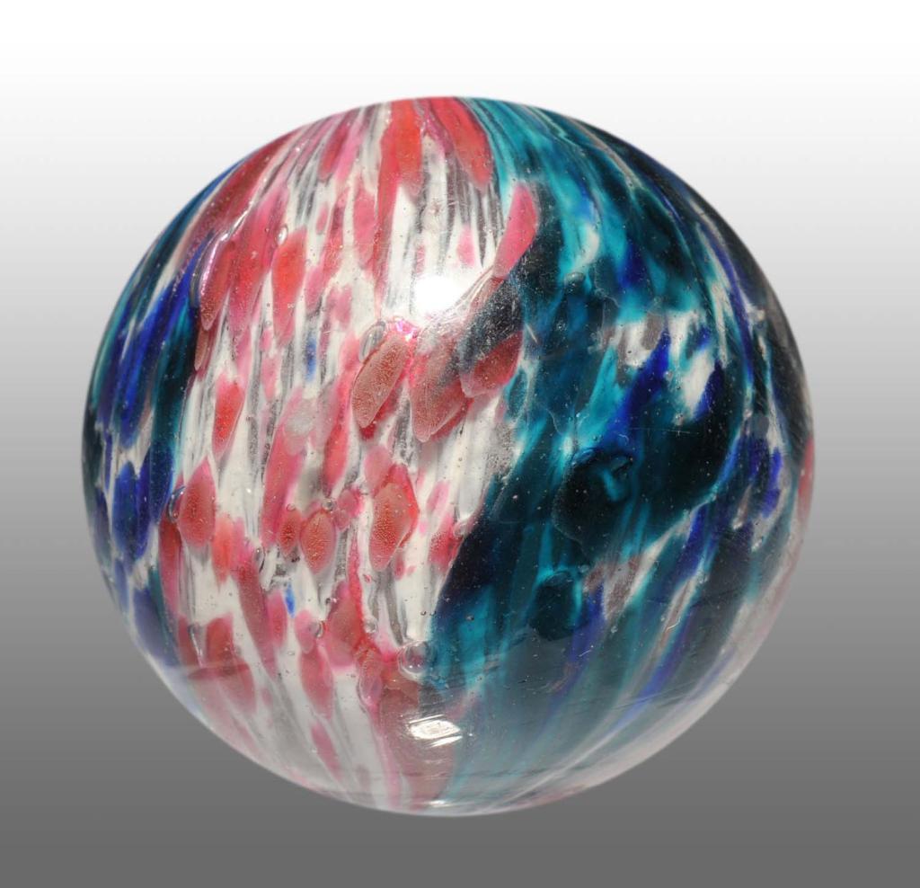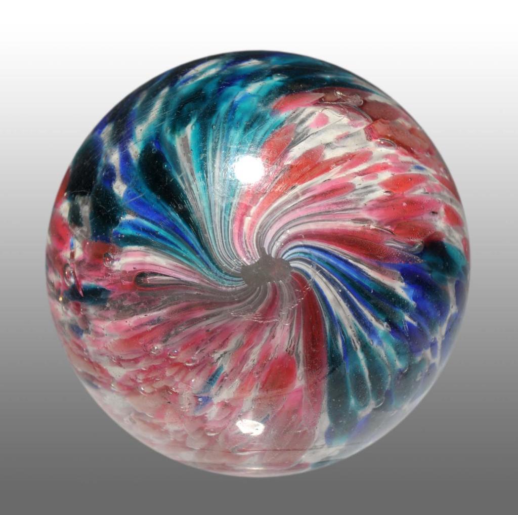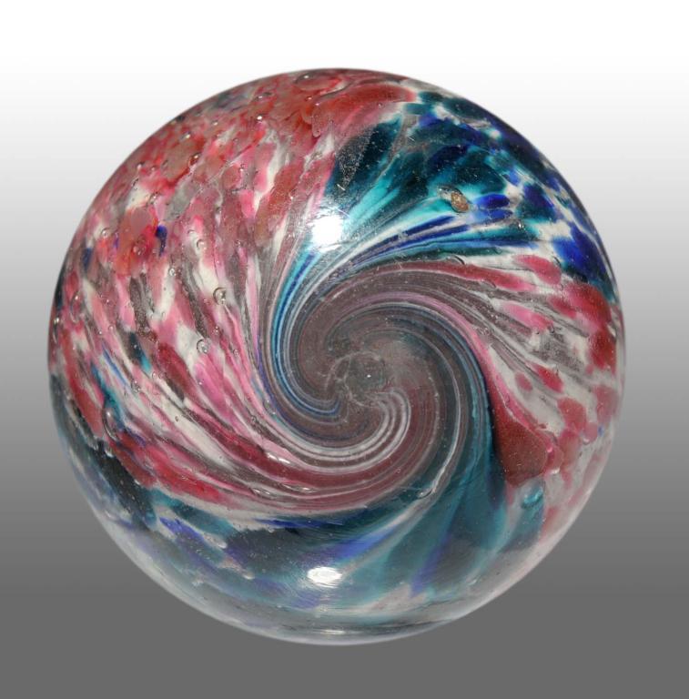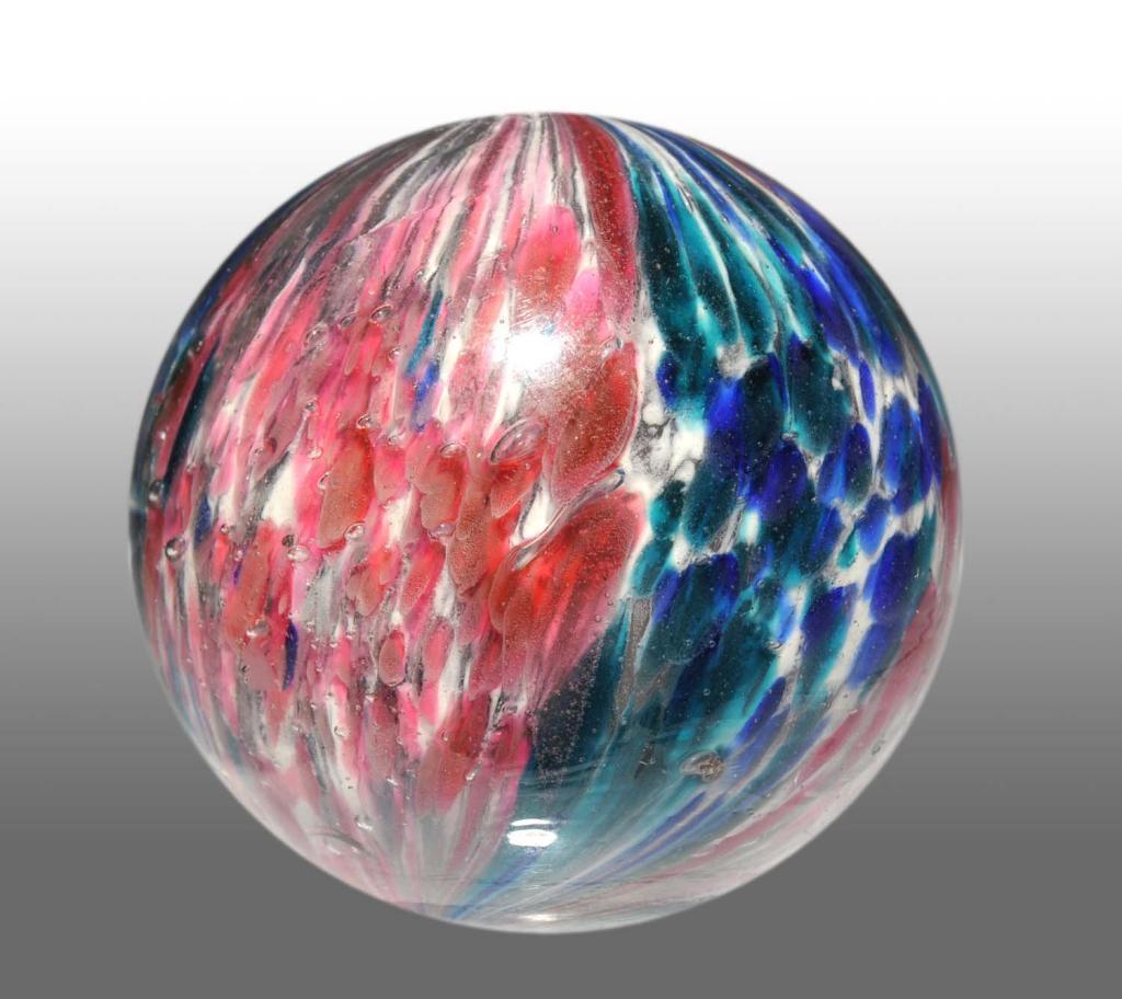 Original surface. Nice deep colors of blue, green, pink and red. Some panels appear to have feathered color. Condition (9.2). Size 1 - 7/8" Dia.