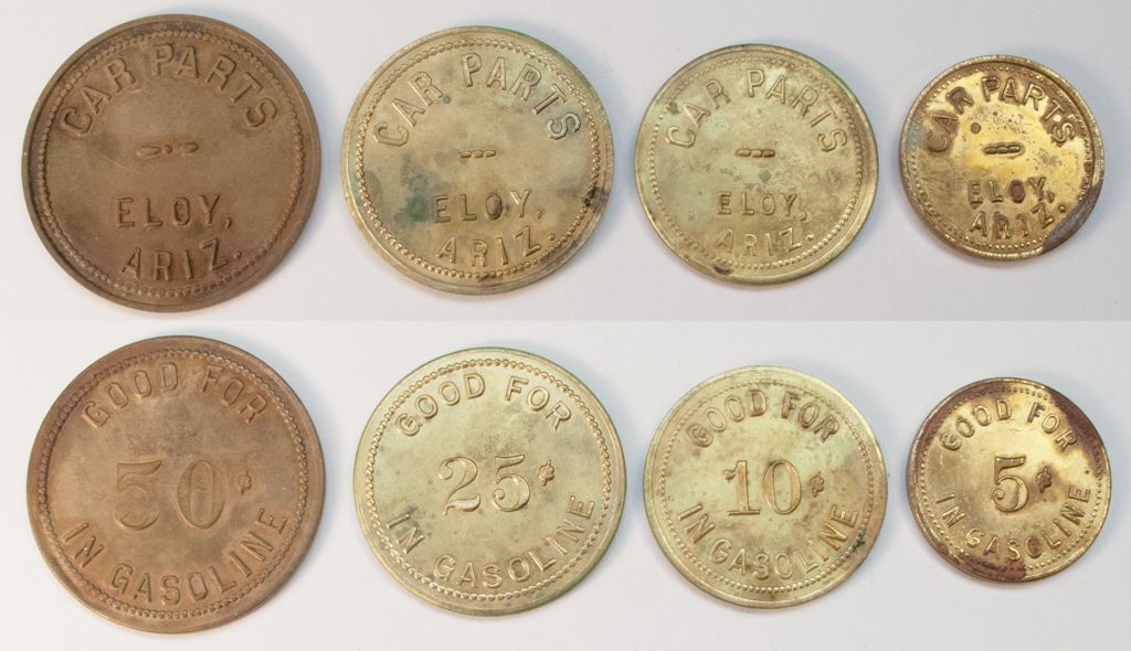 (4) CAR PARTS // 5¢ & 10¢ & 25¢ & 50¢ Brass - Nice quality examples for this scarce location.