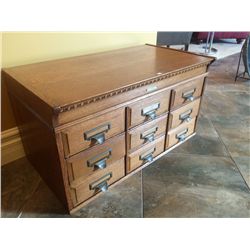 Unique Antique Oak 9 Drawer File Cabinet (33" long, 18" deep, 17.25" high)