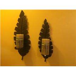 Pair of Metal Leaf Design Wall Mounted Candle Holders