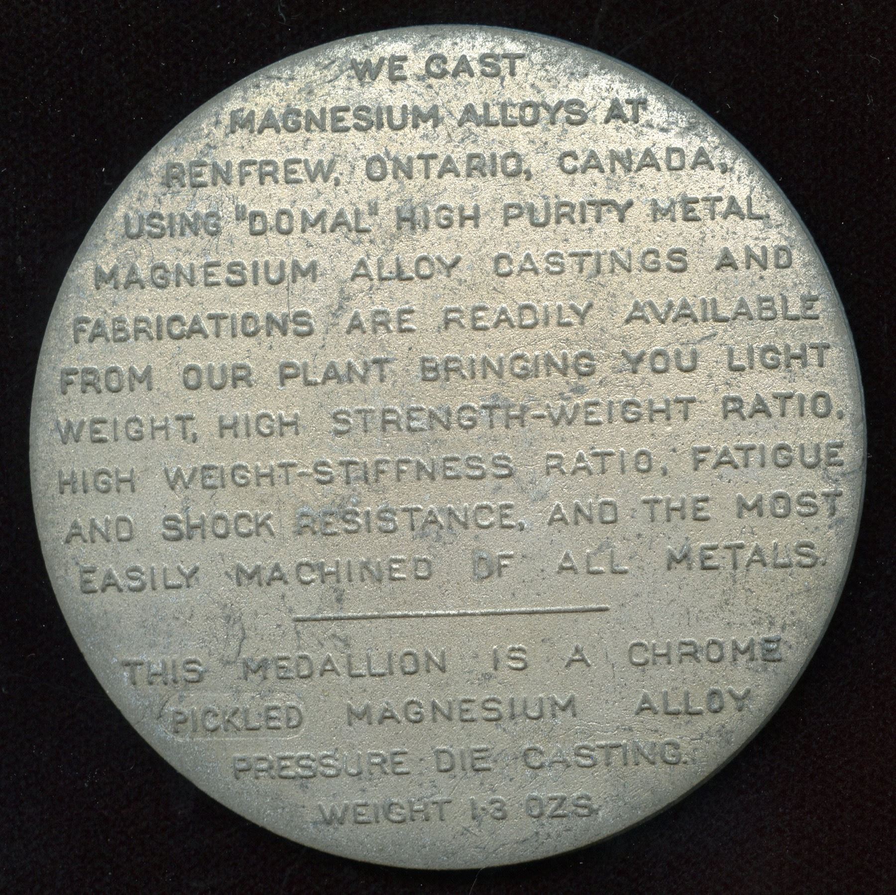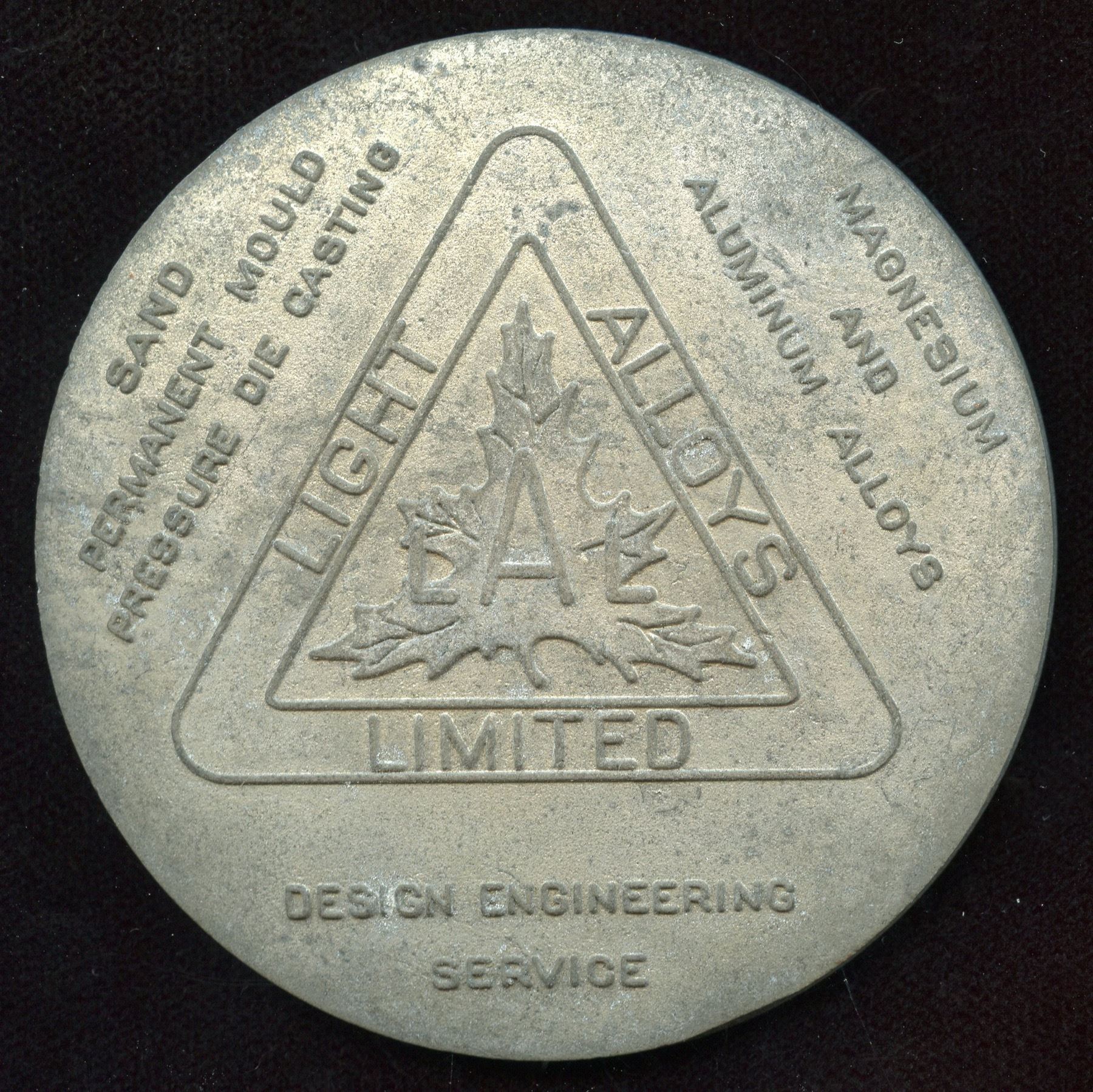 Renfrew, Light alloys Limited, advertising specimen for magnesium and aluminum alloys, this cataloguer has not seen this piece previously.