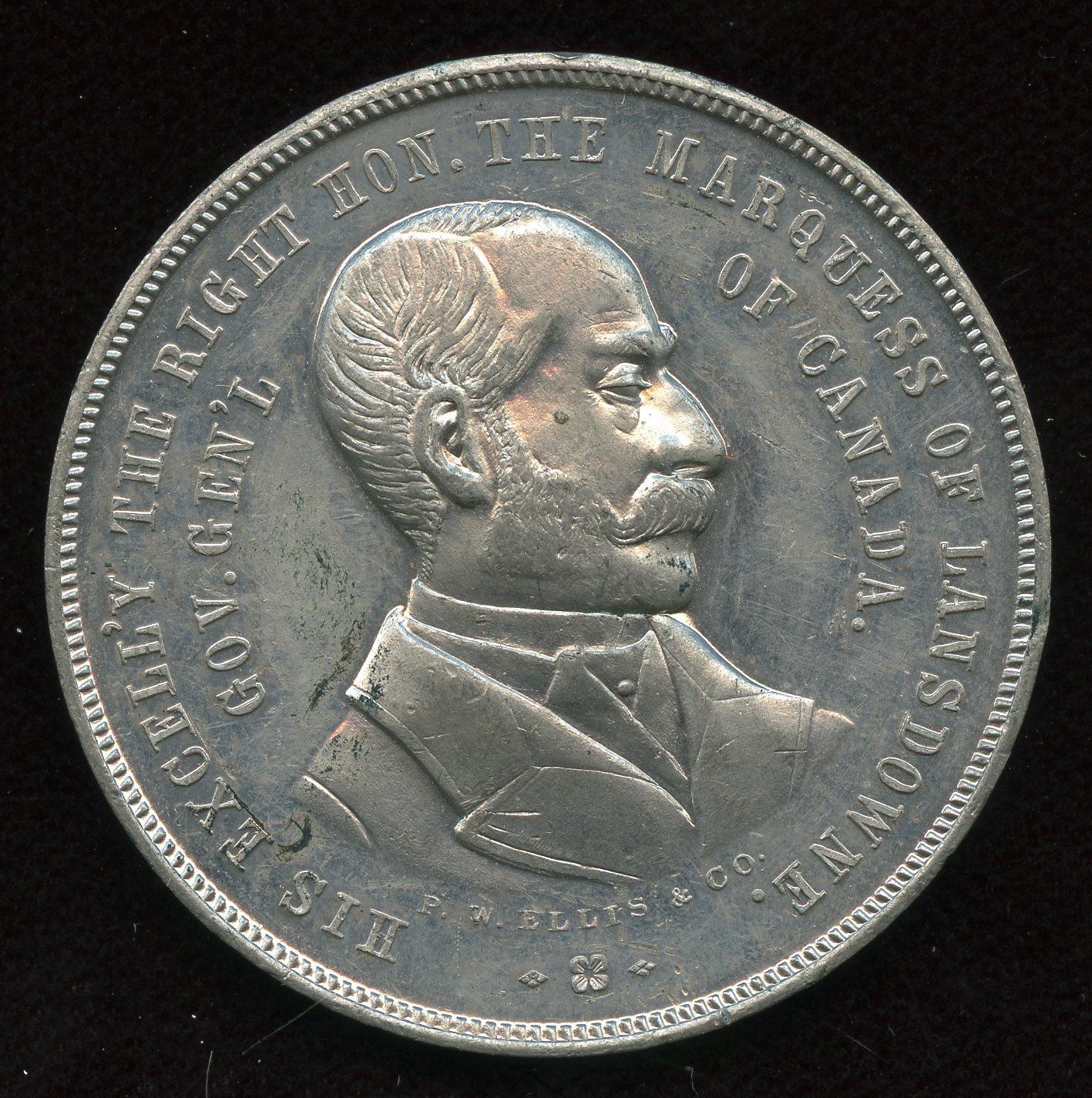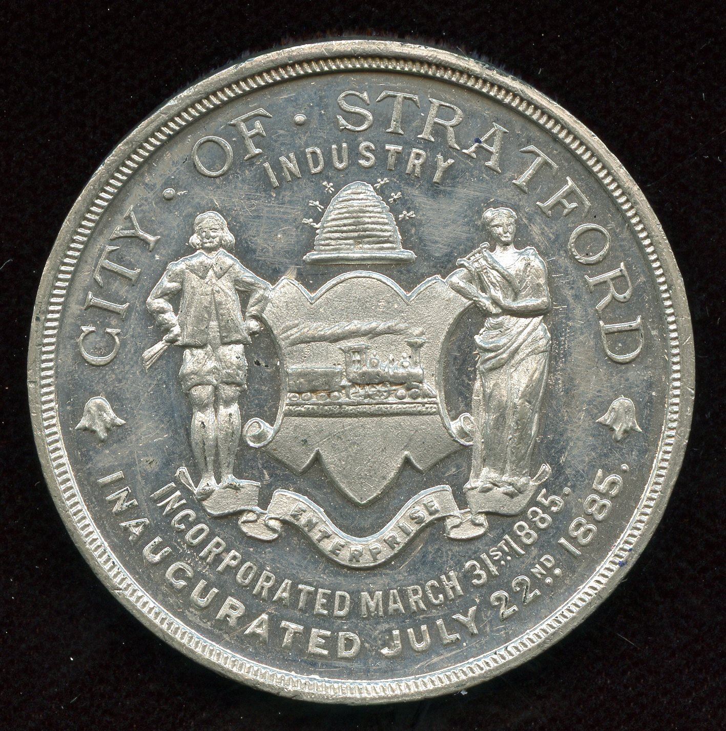 The City of Stratford, Ler 1775, white metal, Bust of Landsdowne, dated 1885, UNC.