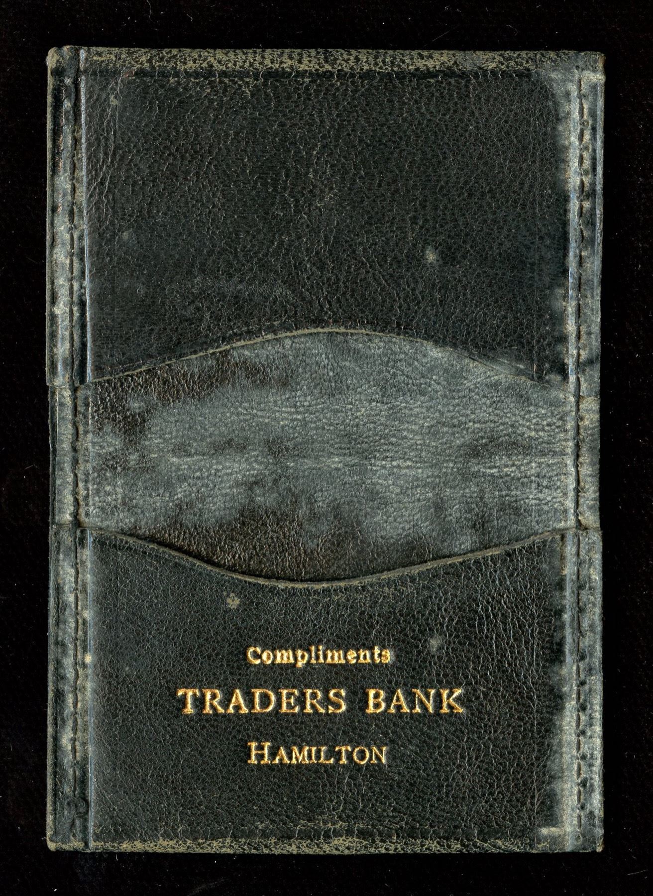 A beautiful Traders Bank leather stamp holder. Given compliments of the bank in Hamilton, ON