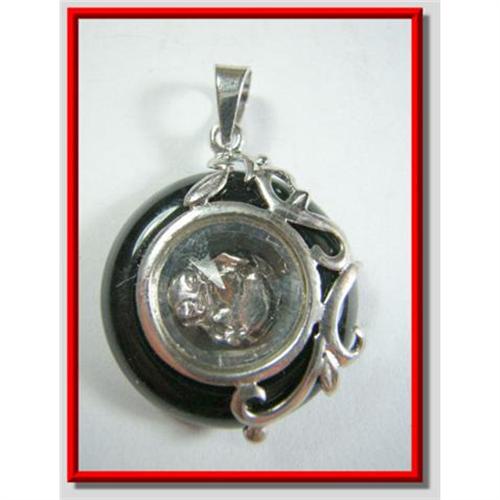 <tr><td>Title:Onyx Alien in Glass Sterling Silver Pendant</td></tr>