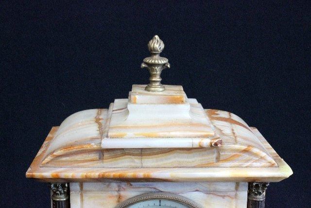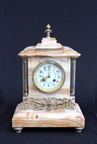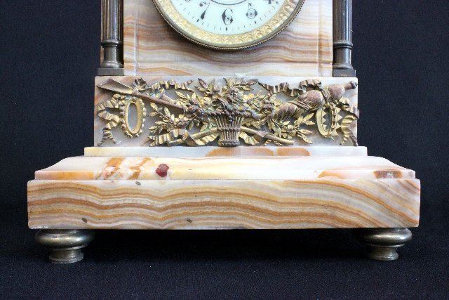 With bronze frieze depicting basket of flowers. Approx. 15 1/2" H to top of finial x 10" W x 6" D. (3249)