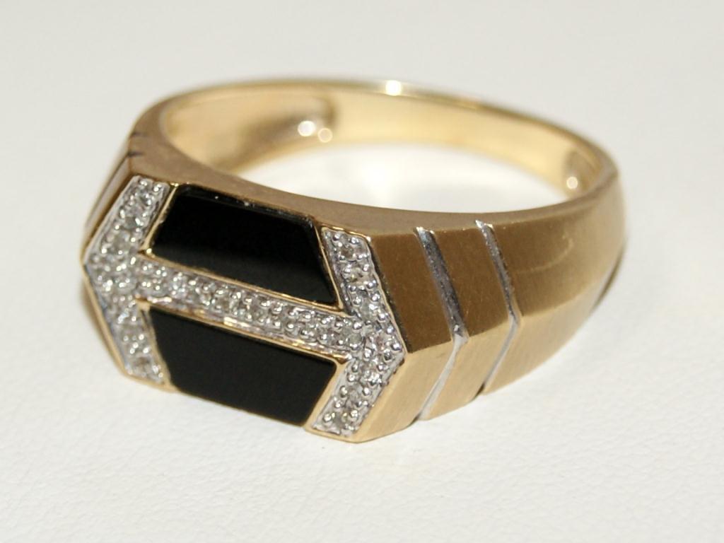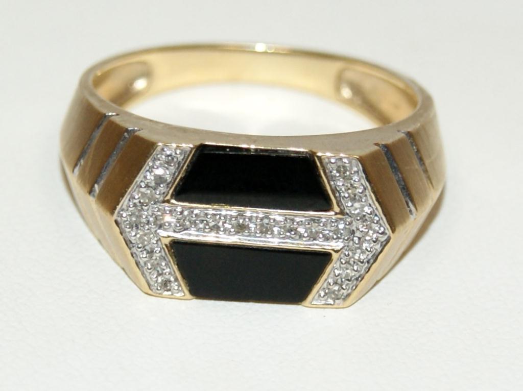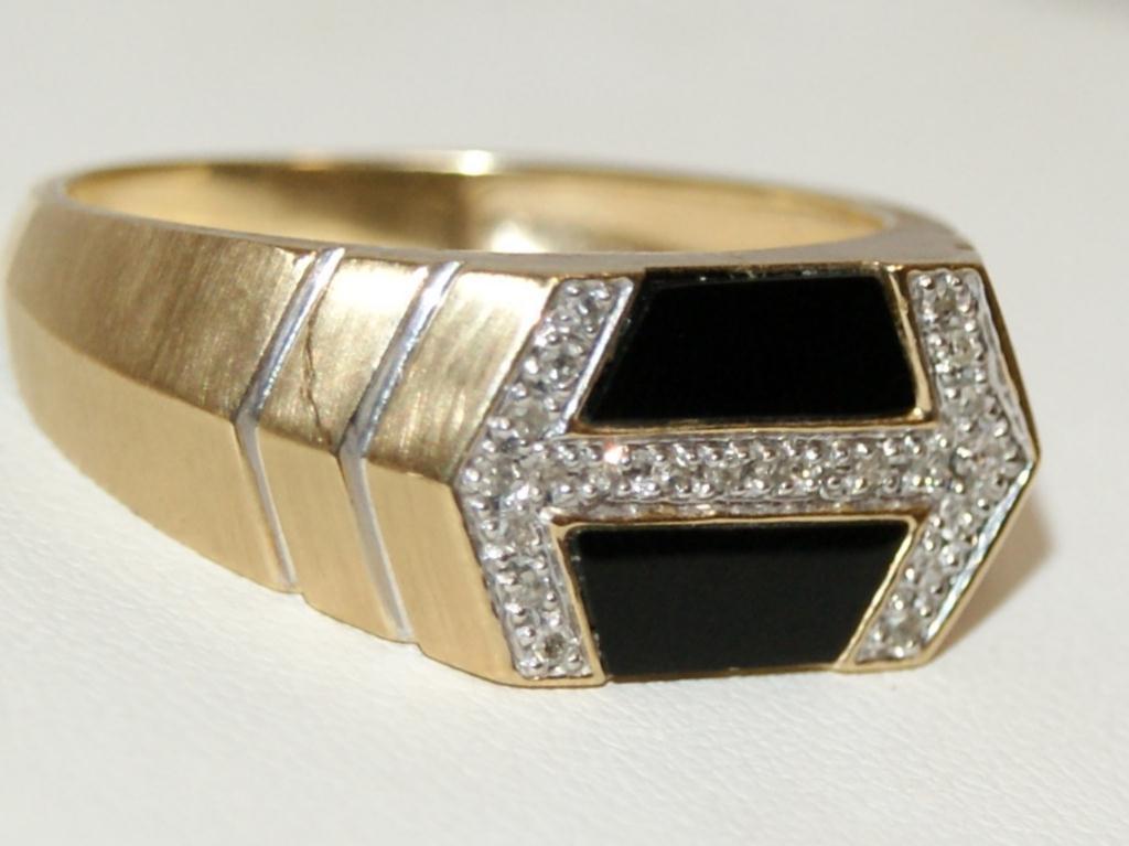 Total Retail $2,910 10Kt Yellow Gold -- (#1) Retail Price $2,910 10Kt Yellow Gold -- Onyx & Diamonds Cluster Men's Ring --