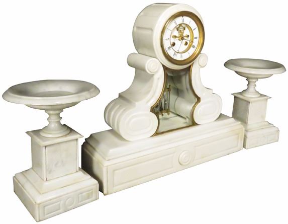 Onyx Mantle Clock with matching candle holders. Clock measures 20 3/4 X 19 X 6 1/4.
