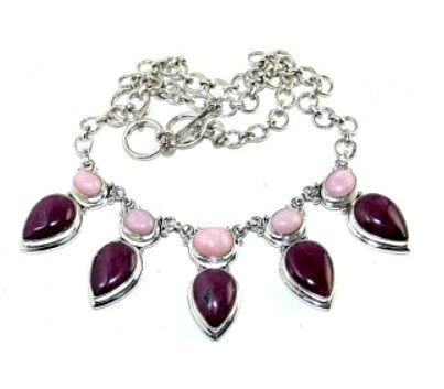 Silver and Onyx & Pink Opal Necklace. Allow 6 to 8 weeks for delivery.