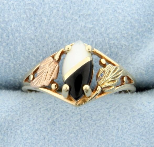 In 10K yellow, rose, & green gold, this ring contains 1ct total weight of gemstones. Size 7 2.1g