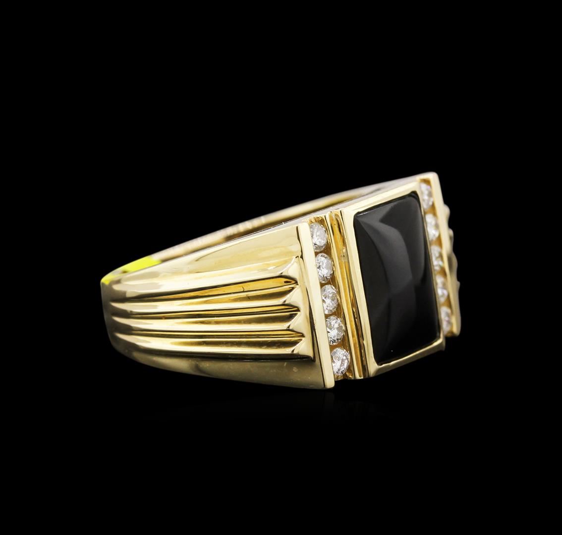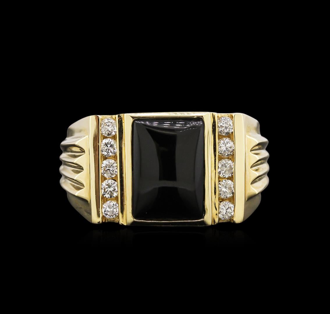 One ring featuring: 14KT yellow gold weighing 10.50 grams containing a black onyx center stone and diamonds with a total diamond weight of 0.44ct.