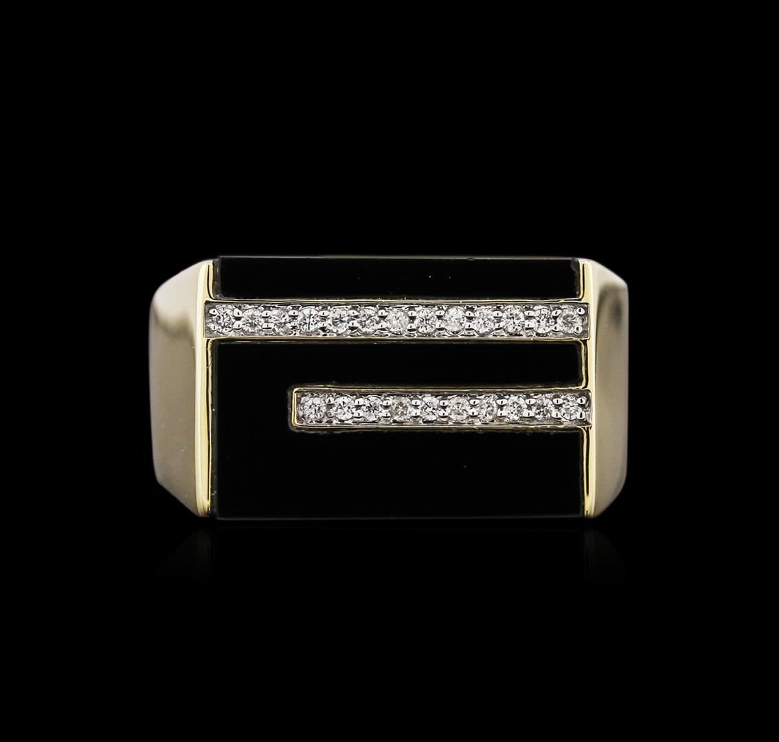 One ring featuring: 14KT yellow gold weighing 8.00 grams containing a black onyx center stone and diamonds with a total diamond weight of 0.20ct.