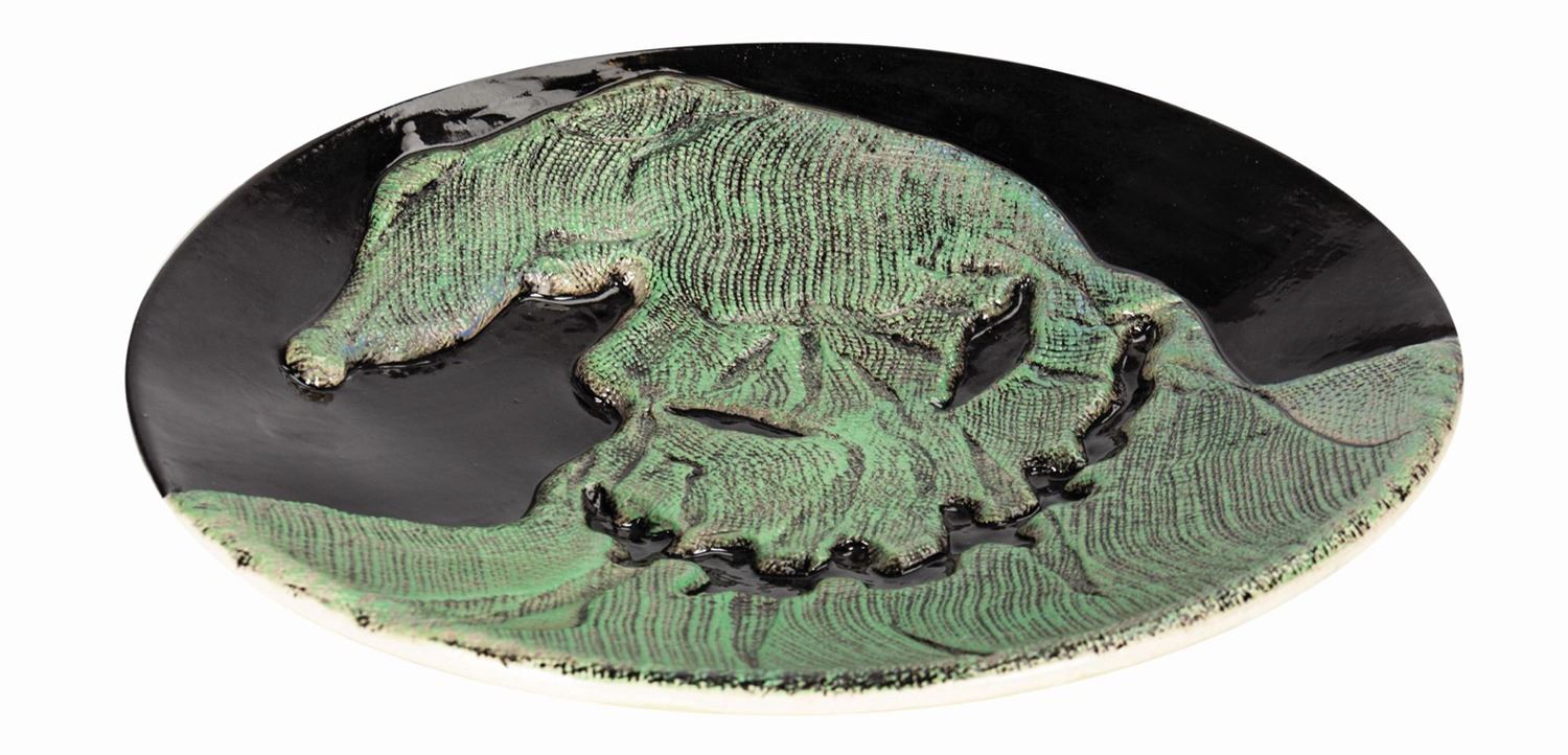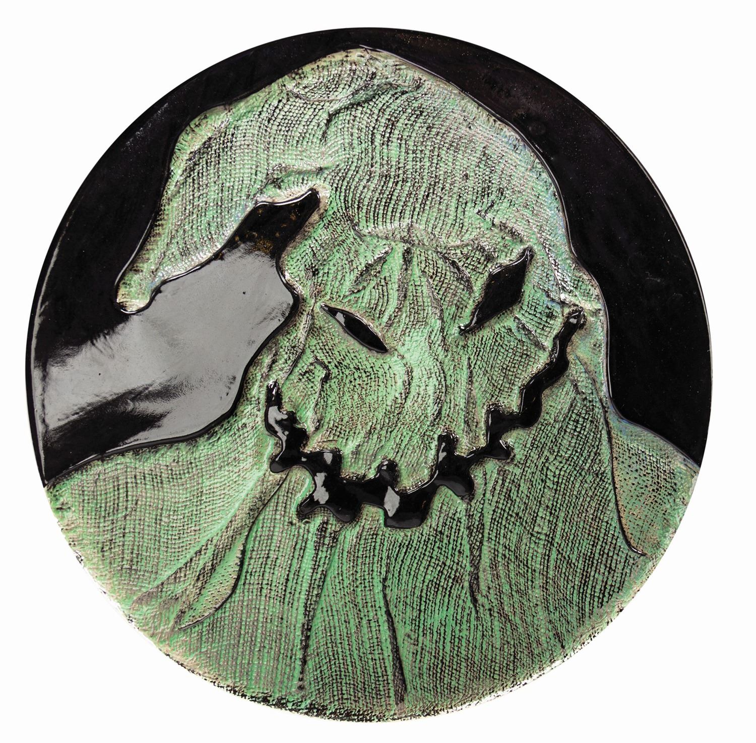(Disney, 1997) A rare signed artist's proof ceramic plate depicting Oogie Boogie from The Nightmare Before Christmas. This plate is signed by its makers Jesse Rhodes and Brenda White. The plate measures 16" in diameter and is in very good condition with minor wear to the edges.