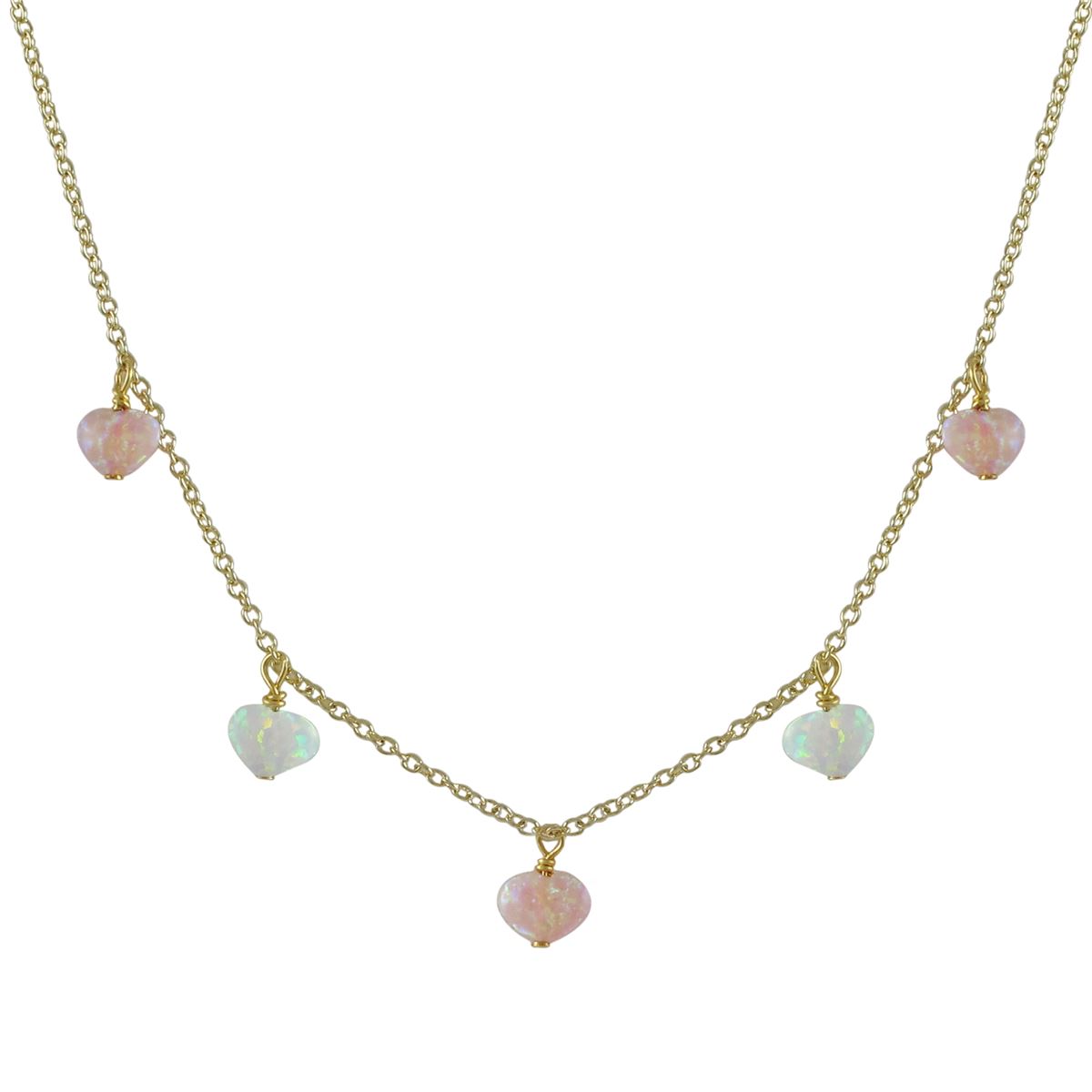 Opal 6X8 Hearts Necklace (Brass) Assorted Colors-16" 2"