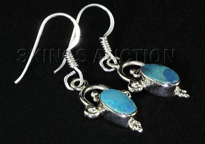 Opal Doublet 12.15ctw Cute Design .925 Hook Earring **|**|** 1.34in. Long Sterling Silver Dangling Hook Earring with a Opal Doublet Gem Measuring 8x6mm Oval ; MSRP: $300