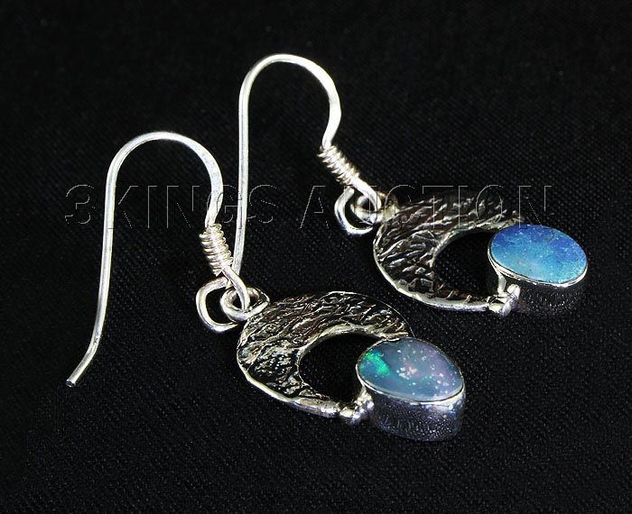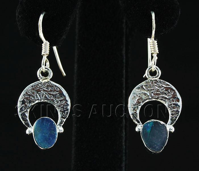 Opal Doublet 13.41ctw Crescent Design .925 Hook Earring **|**|** 1.32in. Long Sterling Silver Danling Hook Earring with a Opal Doublet Gem Measuring 7x5mm Oval ; MSRP: $300