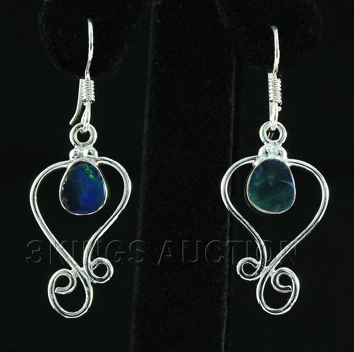 Opal Doublet 16.23ctw Cute Design .925 Hook Earring **|**|** 1.63in. Long Sterling Silver Dangling Hook Earring with a Opal Doublet Gem Measuring 7x5mm Irregular Shape ; MSRP: $400