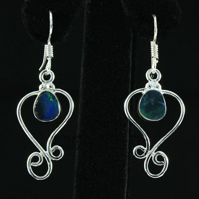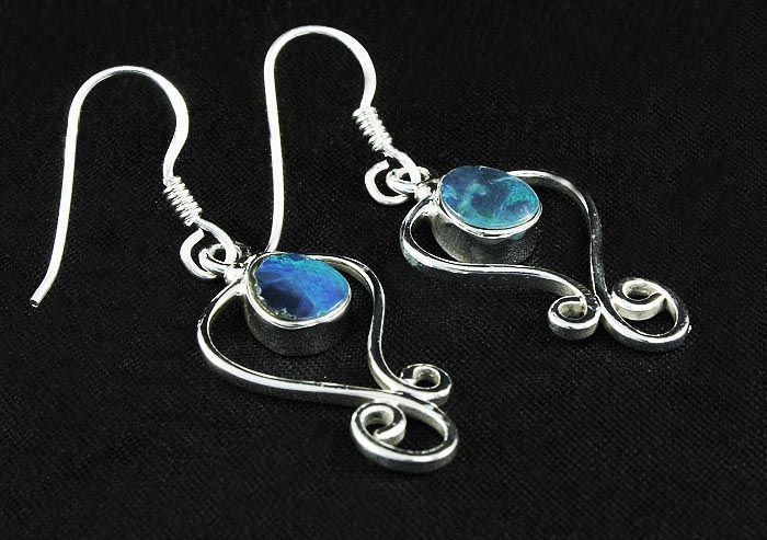 Opal Doublet 16.23ctw Cute Design .925 Hook Earring **|**|** 1.63" Long Sterling Silver Dangling Hook Earring with a Opal Doublet Gem Measuring 7x5mm Irregular Shape ; MSRP: $100