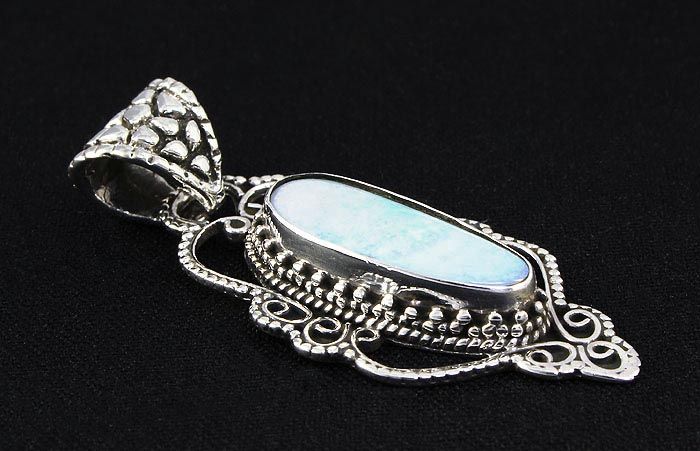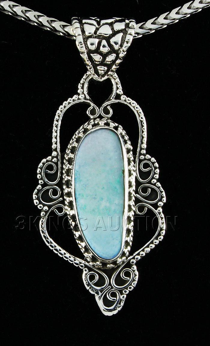 Opal Doublet 16.56ctw Antique Design Silver Pendant **|**|** 1.45in. Long Sterling Silver Pendant with a Opal Doublet Gem Measuring 16x7mm Irregular Shape ; MSRP: $400