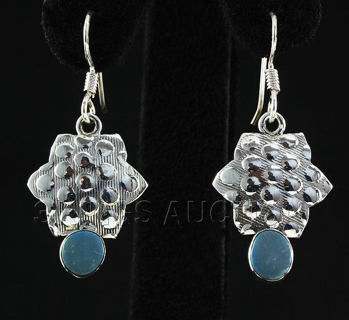 Opal Doublet 18.30ctw Star Design .925 Dangling Earring **|**|** 1.48in. Long Sterling Silver Danling Hook Earring with a Opal Doublet Gem Measuring 7x5mm Oval ; MSRP: $400