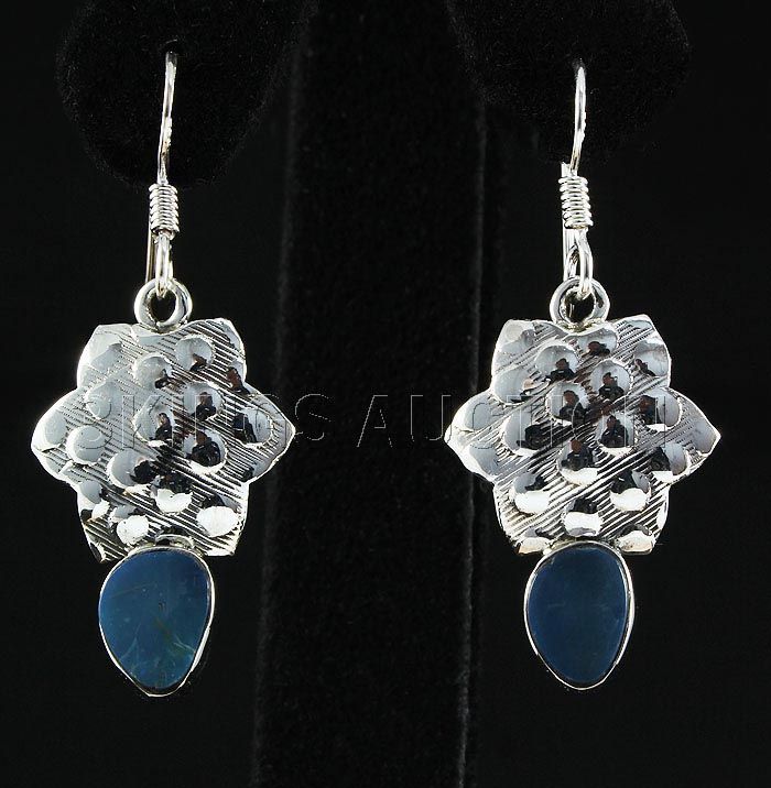 Opal Doublet 21.00ctw Star Design .925 Dangling Earring **|**|** 1.56in. Long Sterling Silver Dangling Hook Earring with a Opal Doublet Gem Measuring 8x6mm Irregular Shape ; MSRP: $500