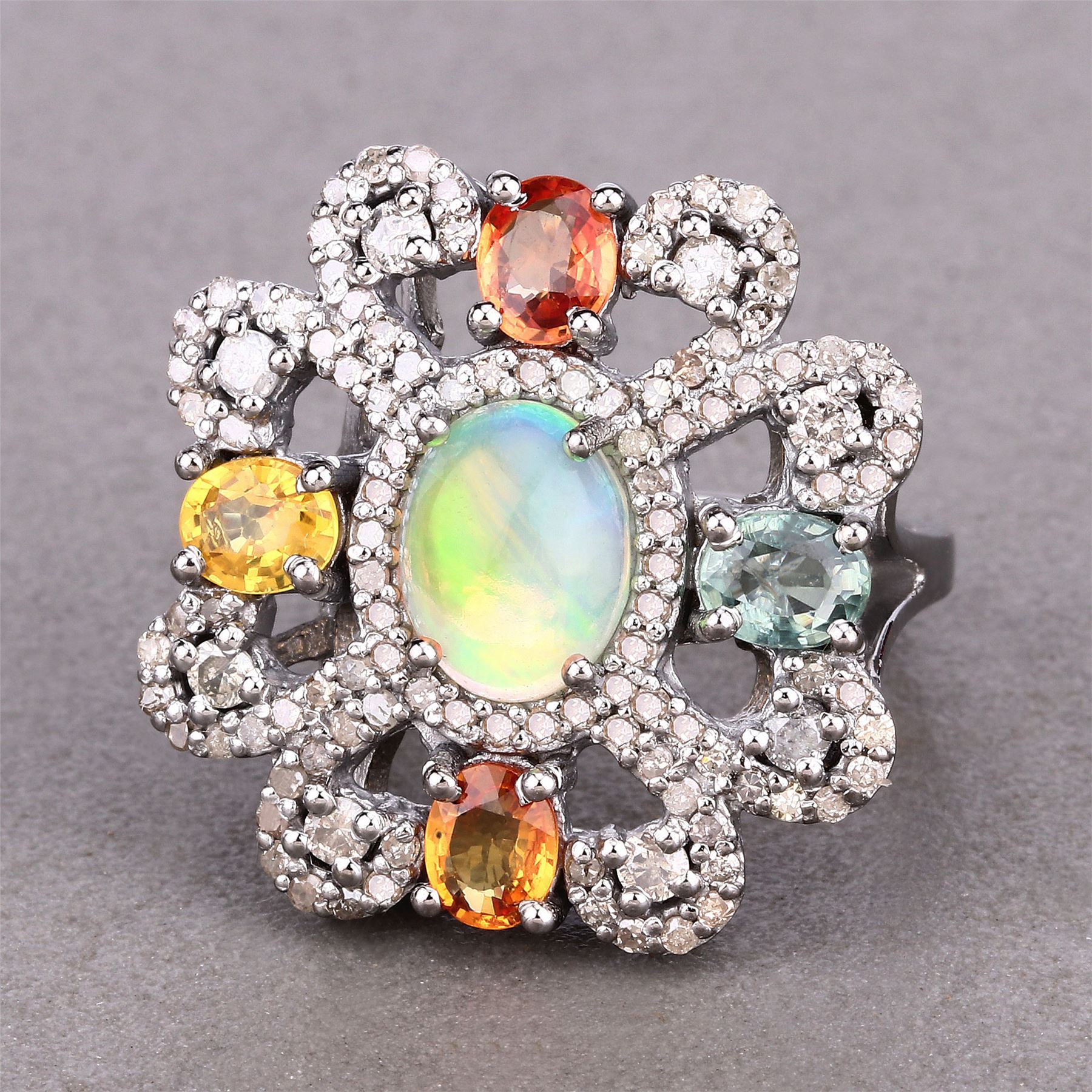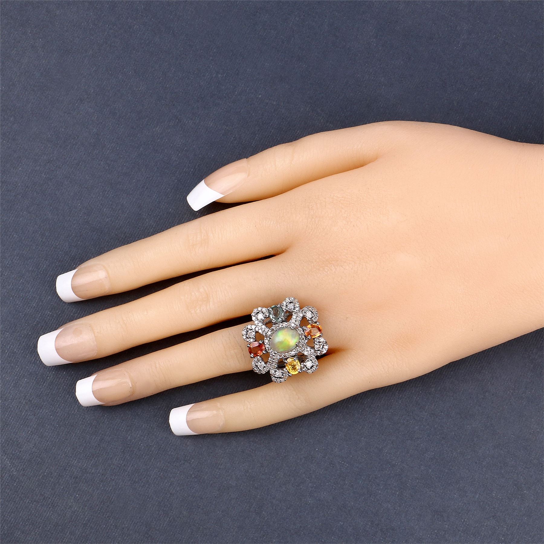 TITLE DESCRIPTION: Opal, Multi-Colored Sapphire and Diamond Ring