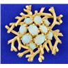 This spectacular 14k yellow gold Opal Pin/Pendant combo is gorgeous! Vintage style, with 10 oval Australian crystal opals that measure from 9mmx7mm to 6mmx4mm. The pendant has a pit of an Asian design to it. The opals are bright with reds, greens, and blues and there are no chips or cracks. The pendant is almost 2" in diameter. 21.2g