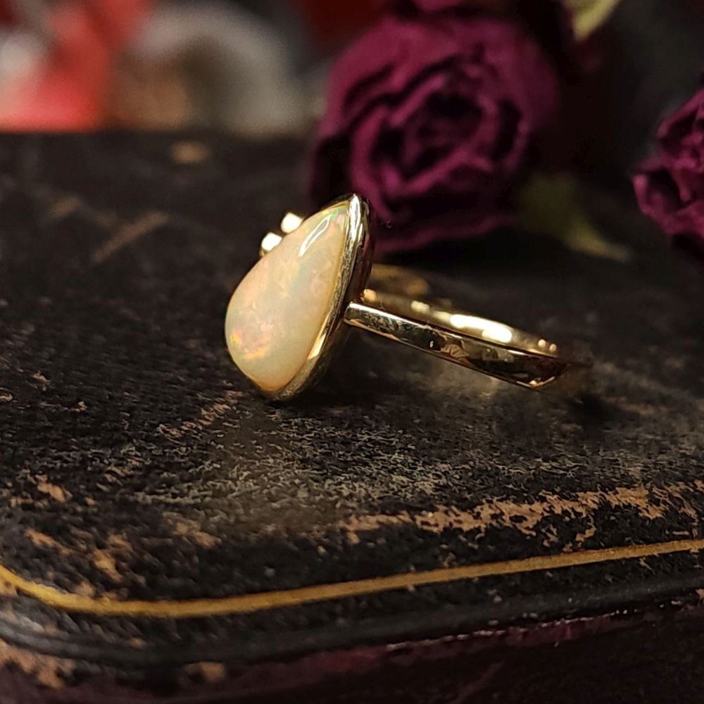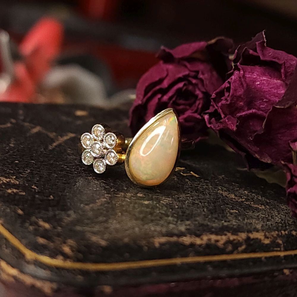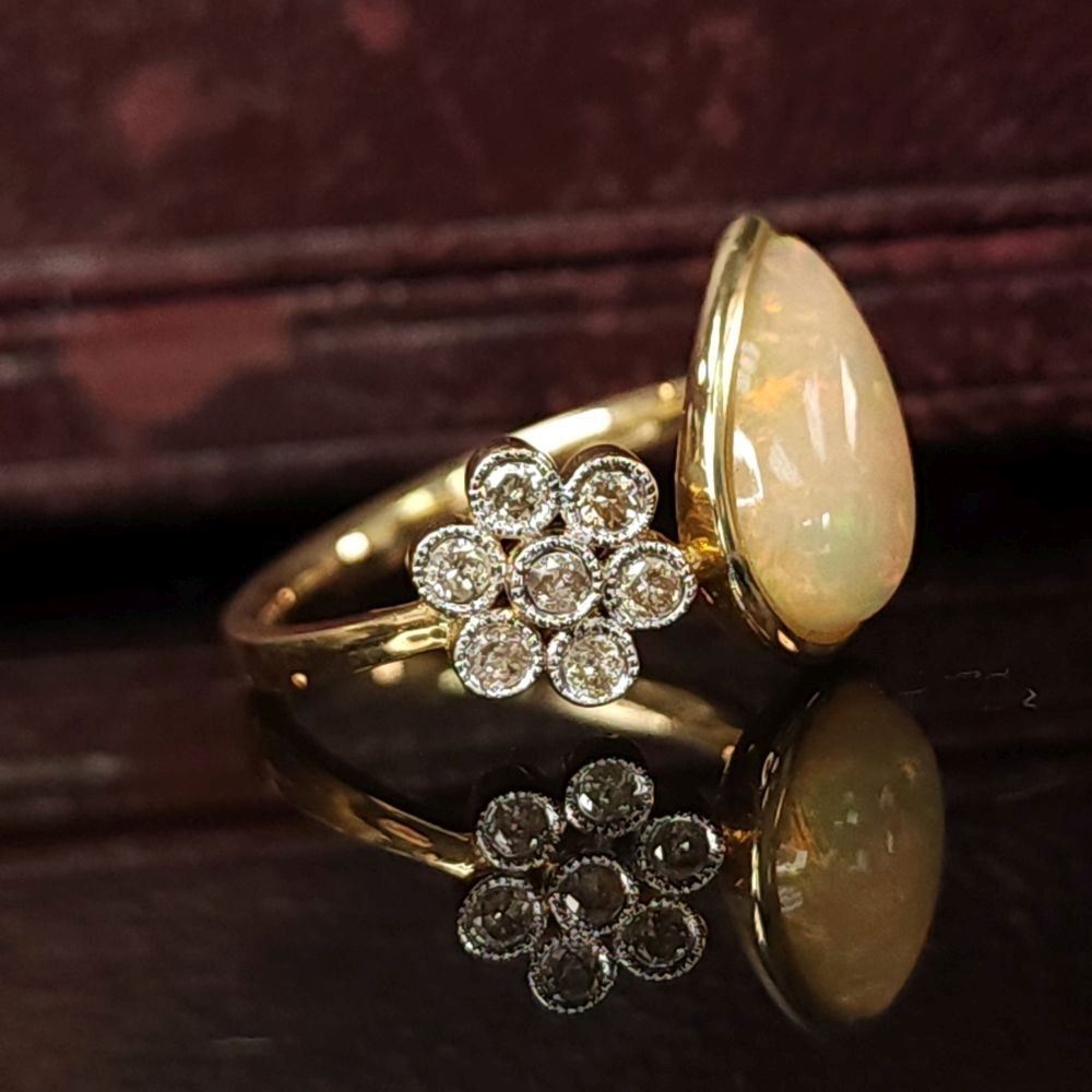 TITLE DESCRIPTION: Opal & quot;Raindrop& quot; and Diamond & quot;Fleurets& quot; Ring