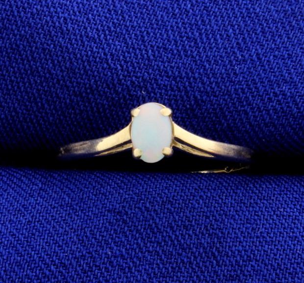 In 10K yellow gold, this ring contains a .25ct oval shaped opal, that has great color of play! Size 6 1/2 .8g