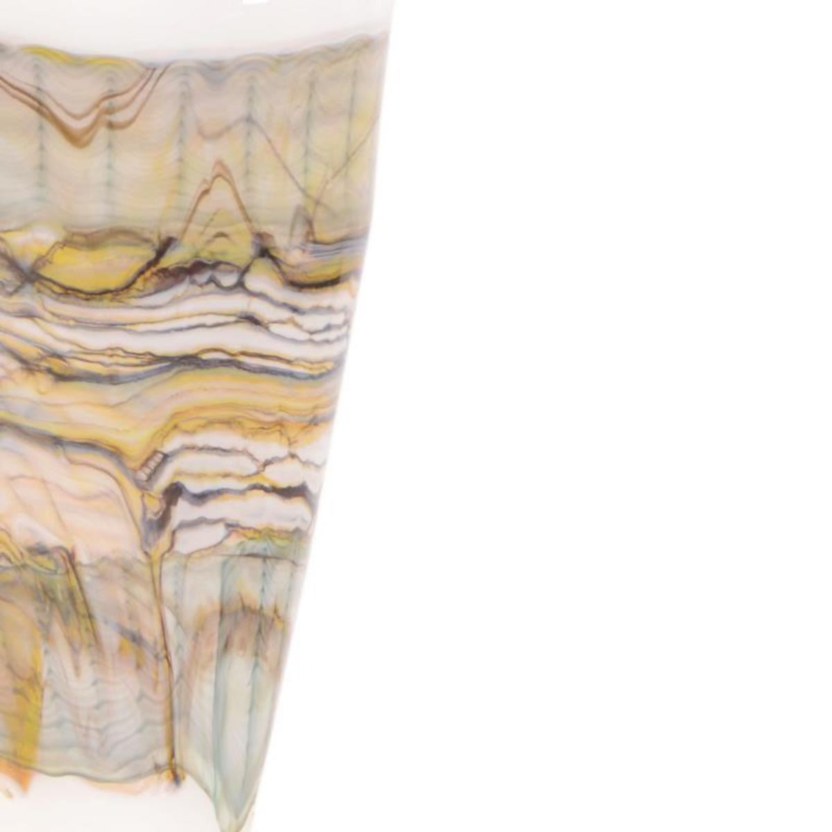 This hand-blown "Opal Series Footed Vessel with Avian Finial" combines sand-etched exteriors, hand signed by GartnerBlade Glass. Measures approx. 10" (avian finial), 6" (diameter) x 21" (height). Reference #: 223948