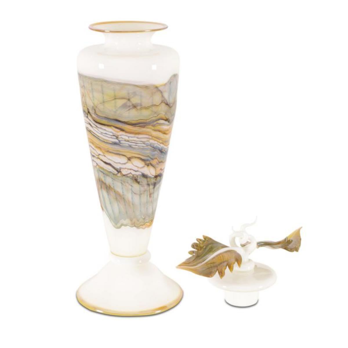 "Opal Series Footed Vessel with Avian Finial" Hand Blown Glass Sculpture, Hand Signed by GartnerBlad