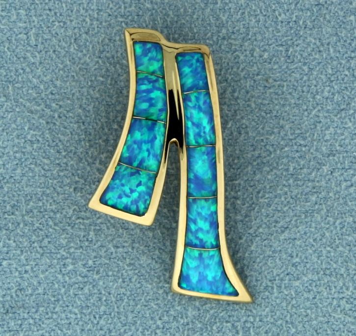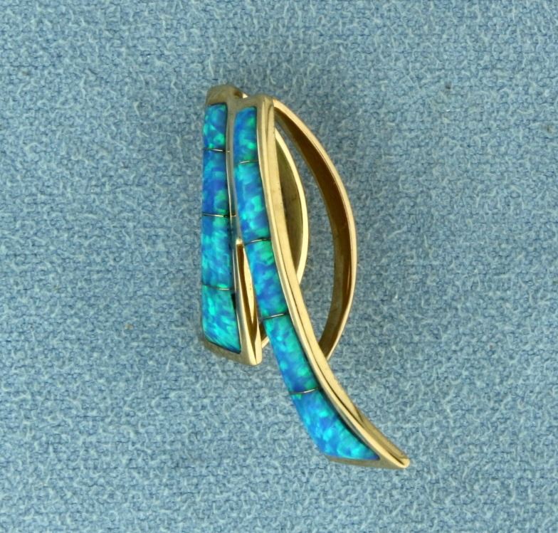 In 14k yellow gold, with excellent play of color. 1 1/8 inch long. 3.3g.