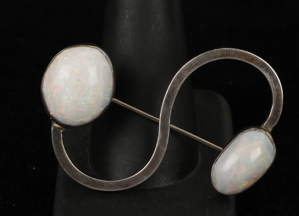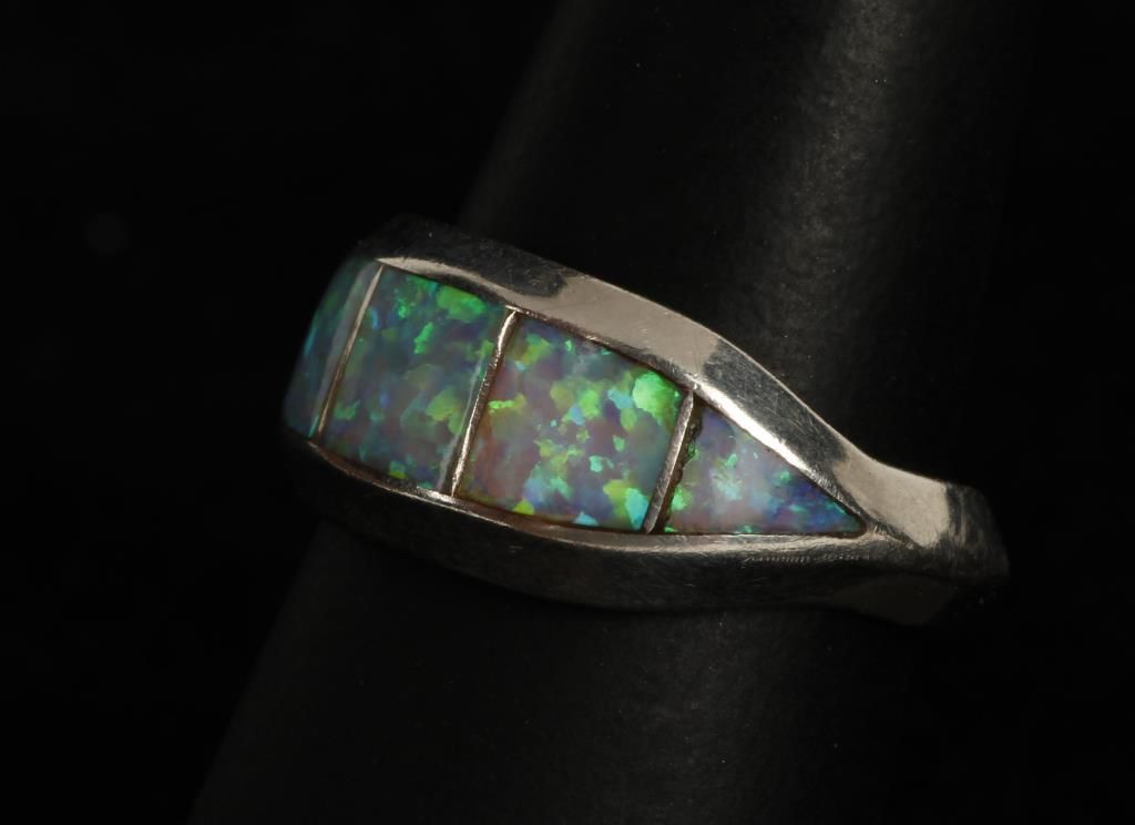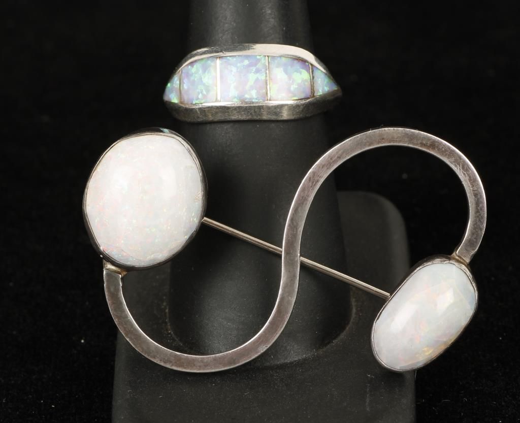 Includes a pin in a snake shape and an inlaid opal ring size 6.