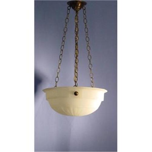 </font></strong>circa 1900 A large opaline glass inverted dome chandelier detailed with ornaments ,height 28 " diameter 16" available wired three light bulbs.</font>