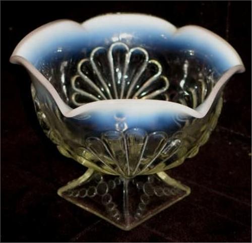 Opalescent Footed disk with Fan Design, 4.5 x 6.