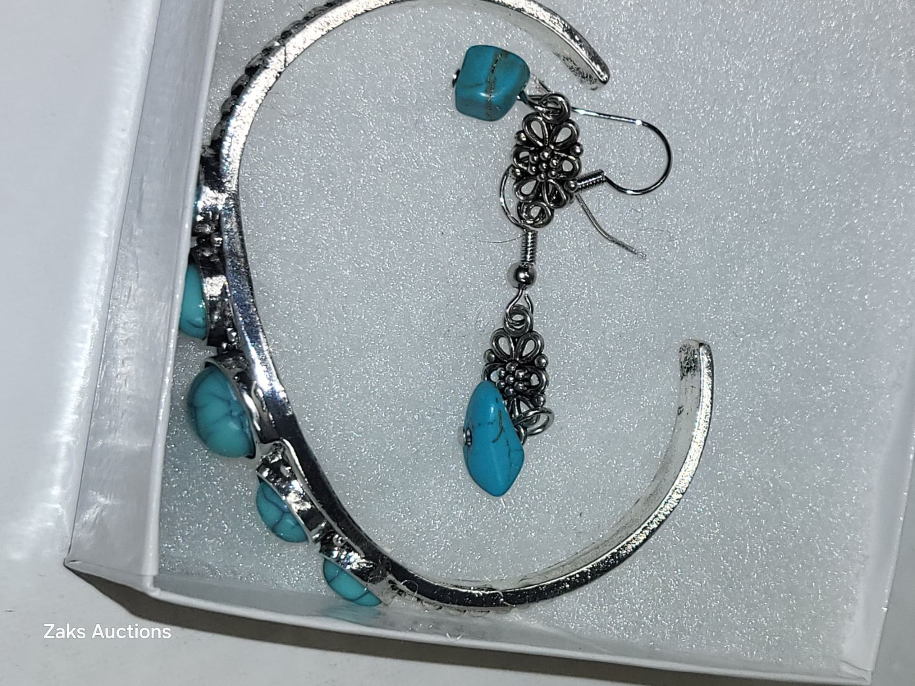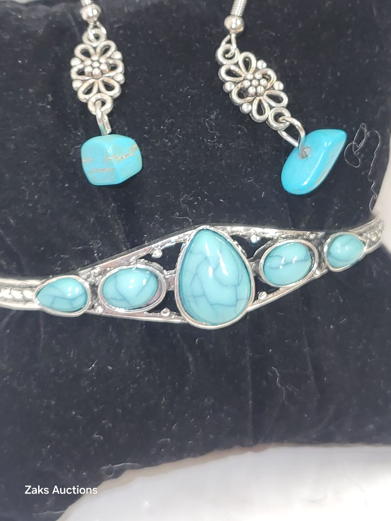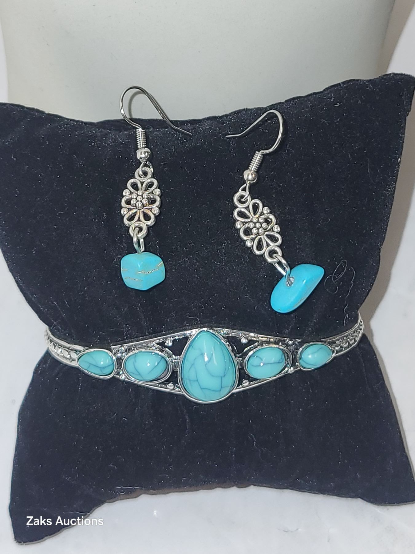 Open Bangle Cuff Turquoise Bracelet & Earrings