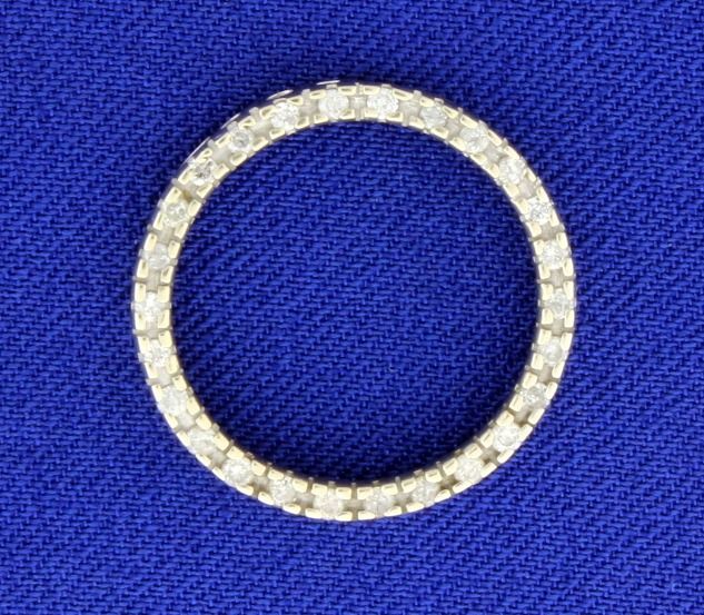The pendant is 10K white gold and contains 1/4 ct total weight of diamonds. It is approximately 3/4 inch long. 1.3g