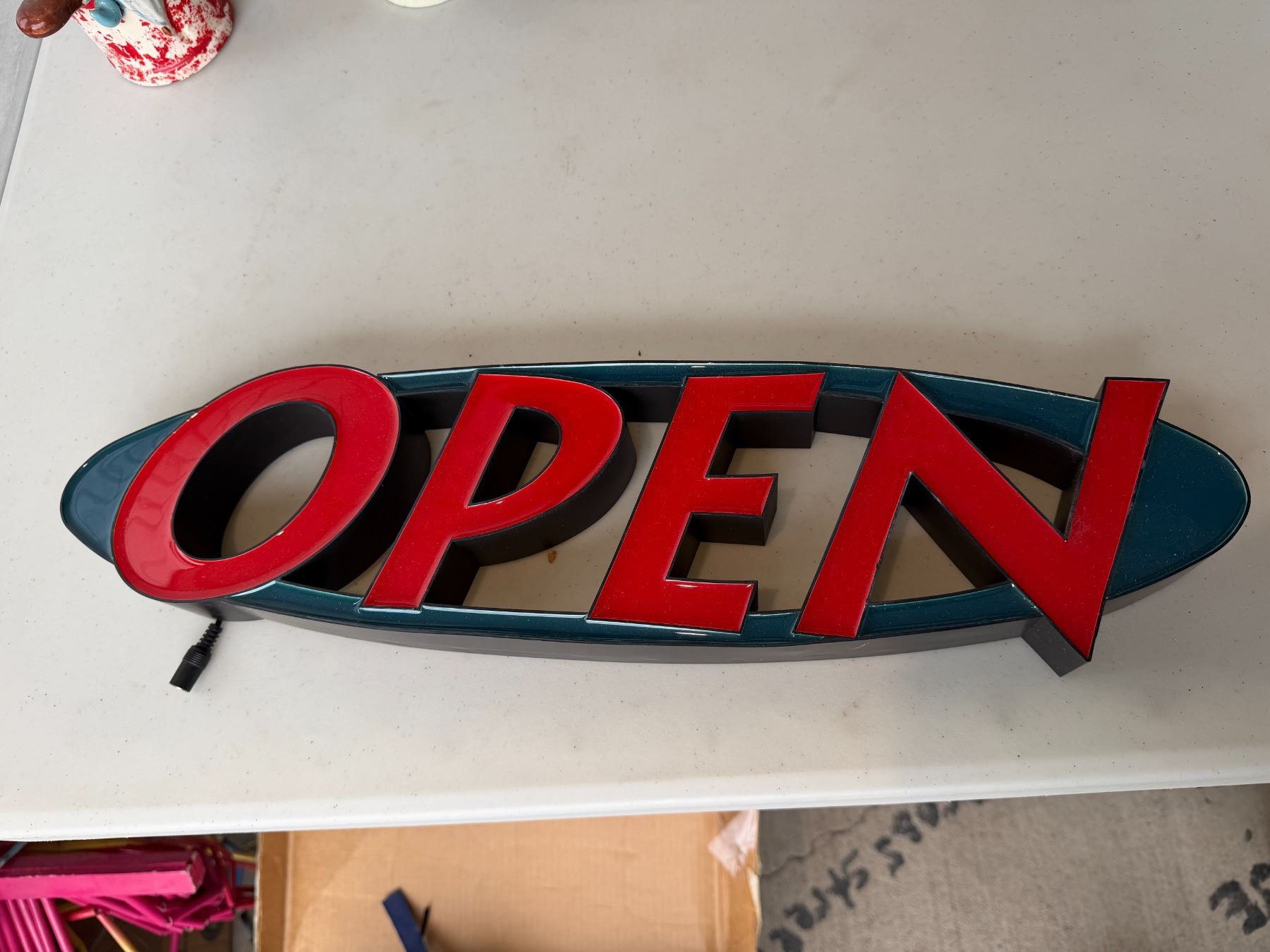 Open sign needs power cord