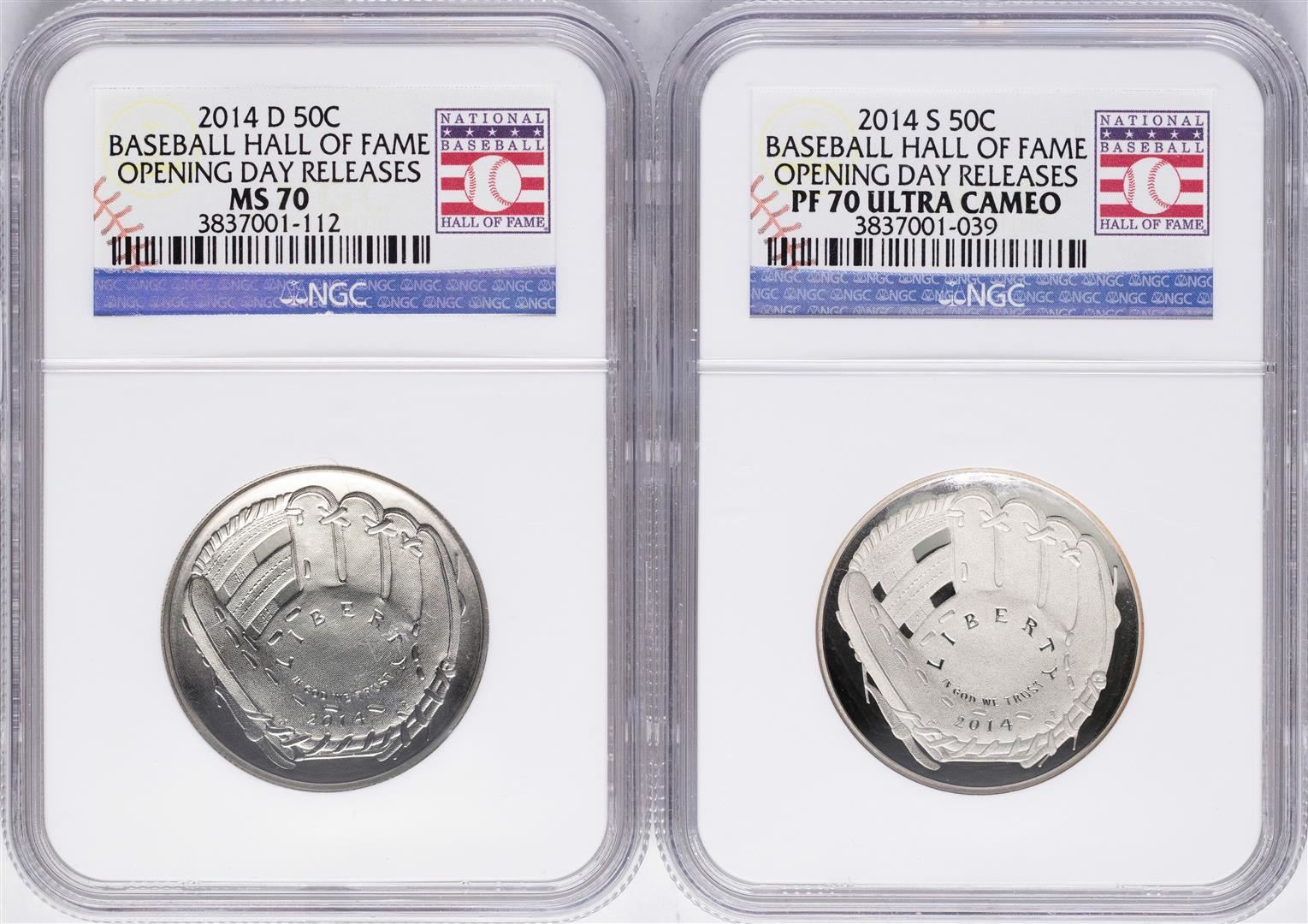 One Opening Day 2014-D & 2014-S Baseball Hall of Fame Half Dollar Coins NGC MS70/PF70. NGC Certified.