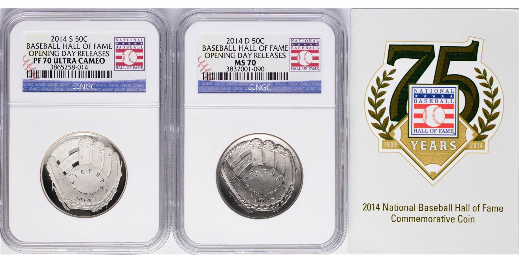 One Opening Day 2014-D & 2014-S Baseball Hall of Fame Half Dollar Coins NGC MS70/PF70. NGC Certified.