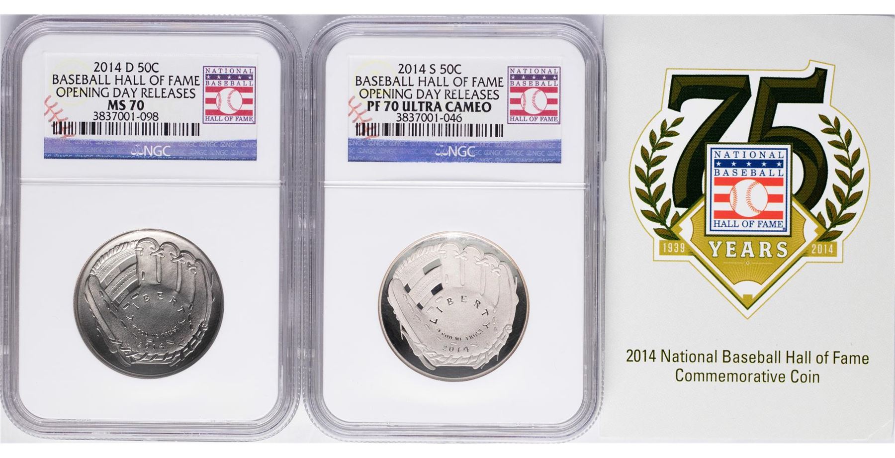 One Opening Day 2014-D & 2014-S Baseball Hall of Fame Half Dollar Coins NGC MS70/PF70. NGC Certified.