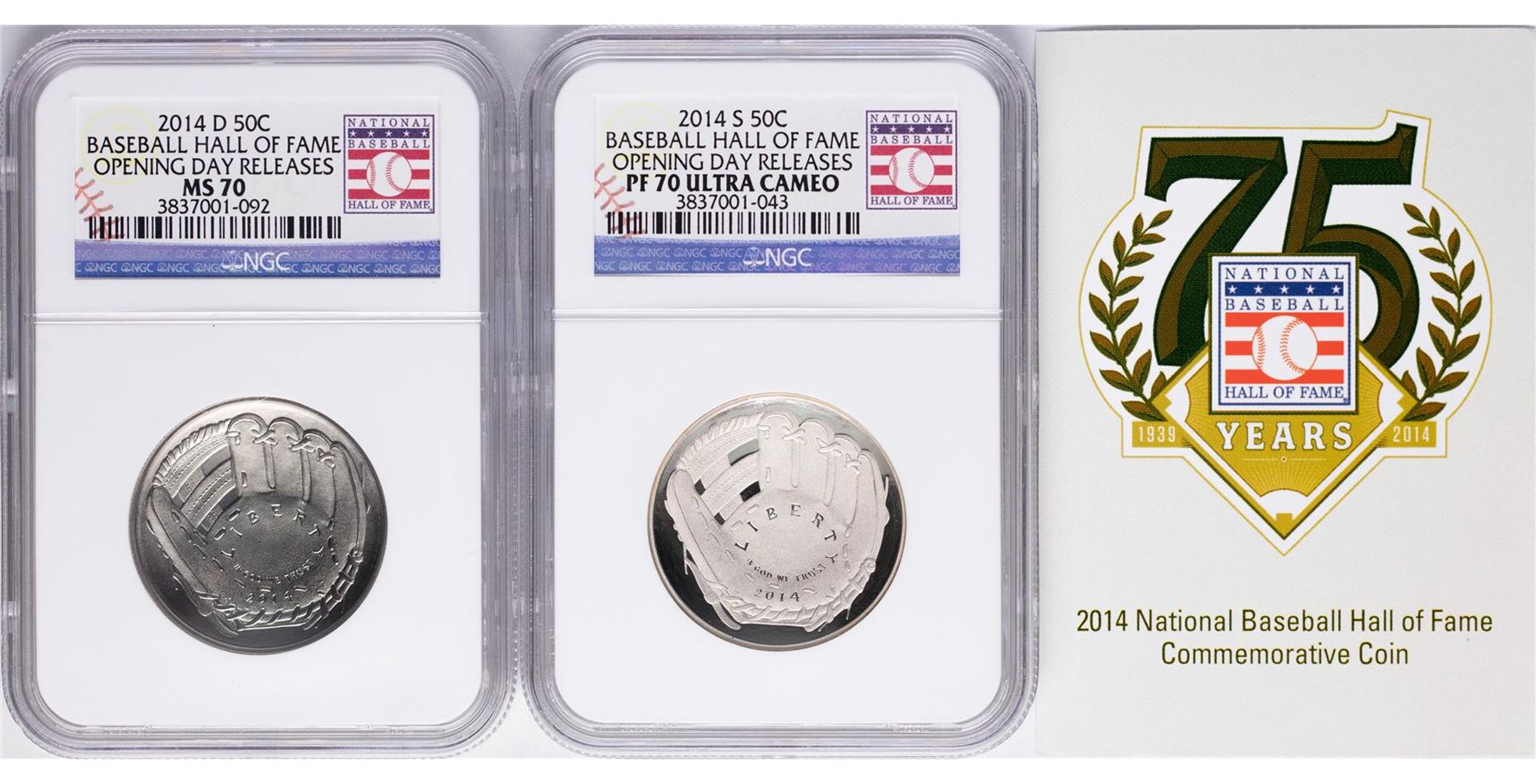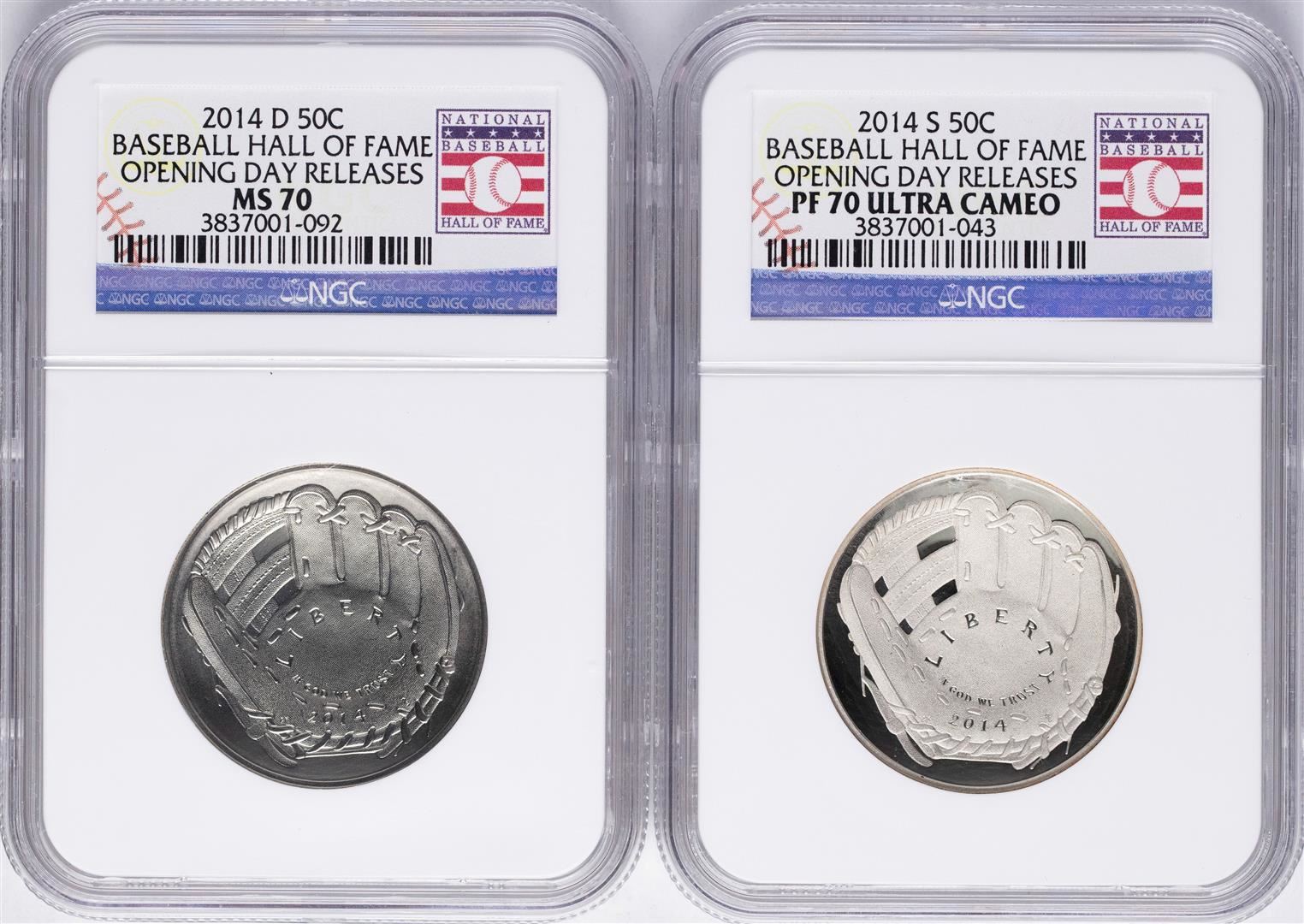 One Opening Day 2014-D & 2014-S Baseball Hall of Fame Half Dollar Coins NGC MS70/PF70. NGC Certified.