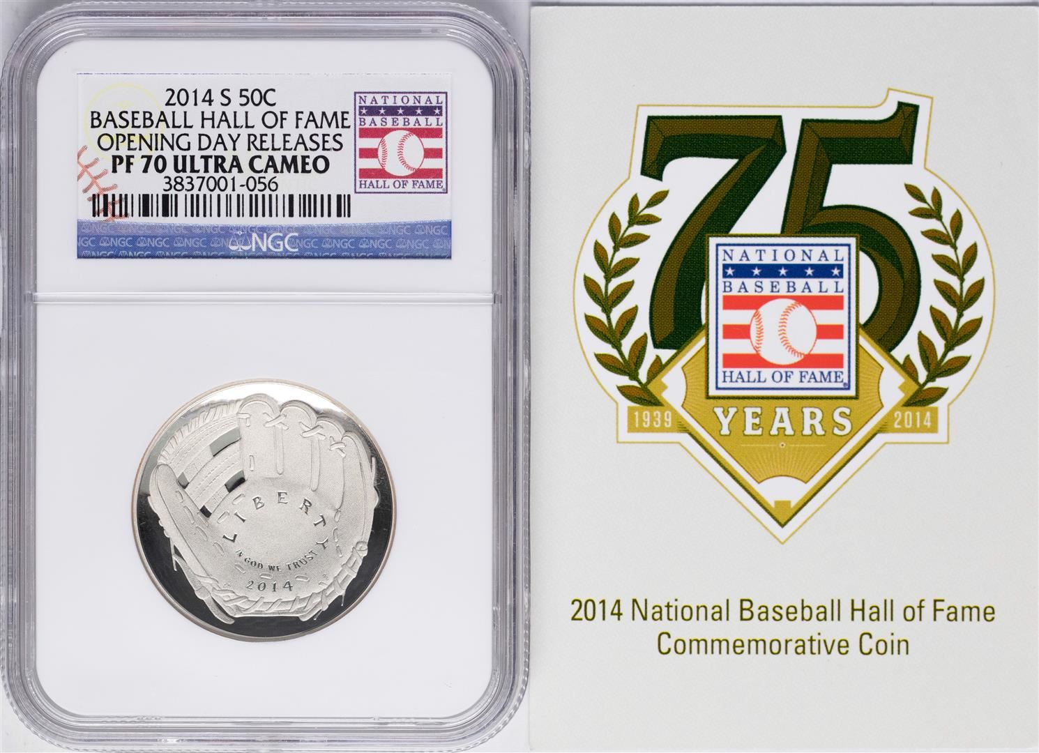 One Opening Day 2014-S Proof Baseball Hall of Fame Half Dollar Coin NGC PF70. NGC Certified.