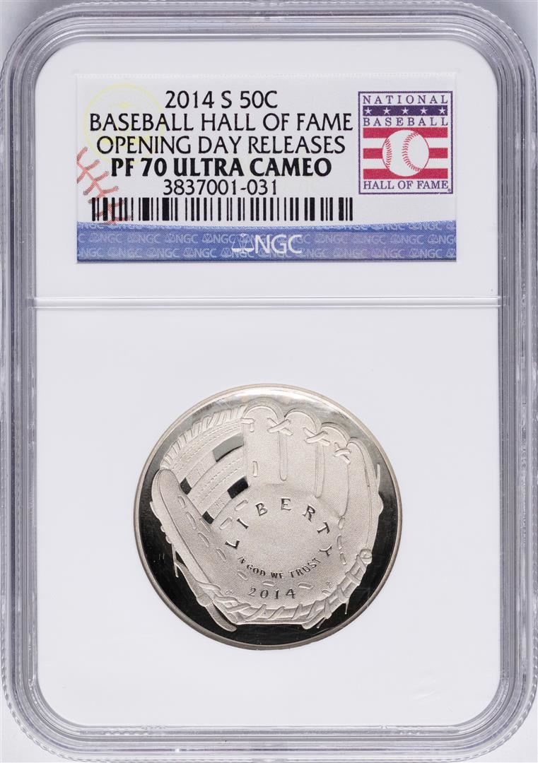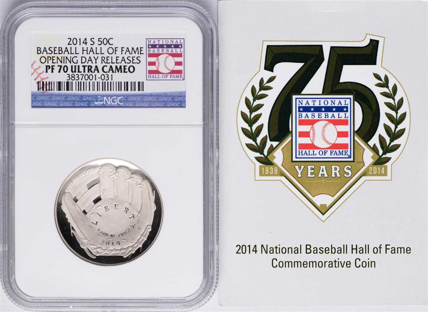 One Opening Day 2014-S Proof Baseball Hall of Fame Half Dollar Coin NGC PF70. NGC Certified.