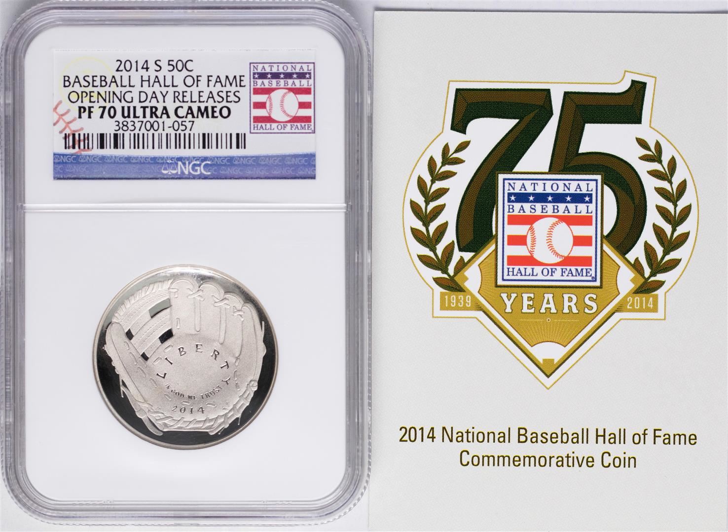 One Opening Day 2014-S Proof Baseball Hall of Fame Half Dollar Coin NGC PF70. NGC Certified.