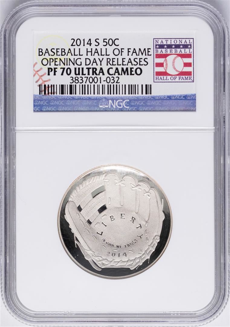 One Opening Day 2014-S Proof Baseball Hall of Fame Half Dollar Coin NGC PF70. NGC Certified.
